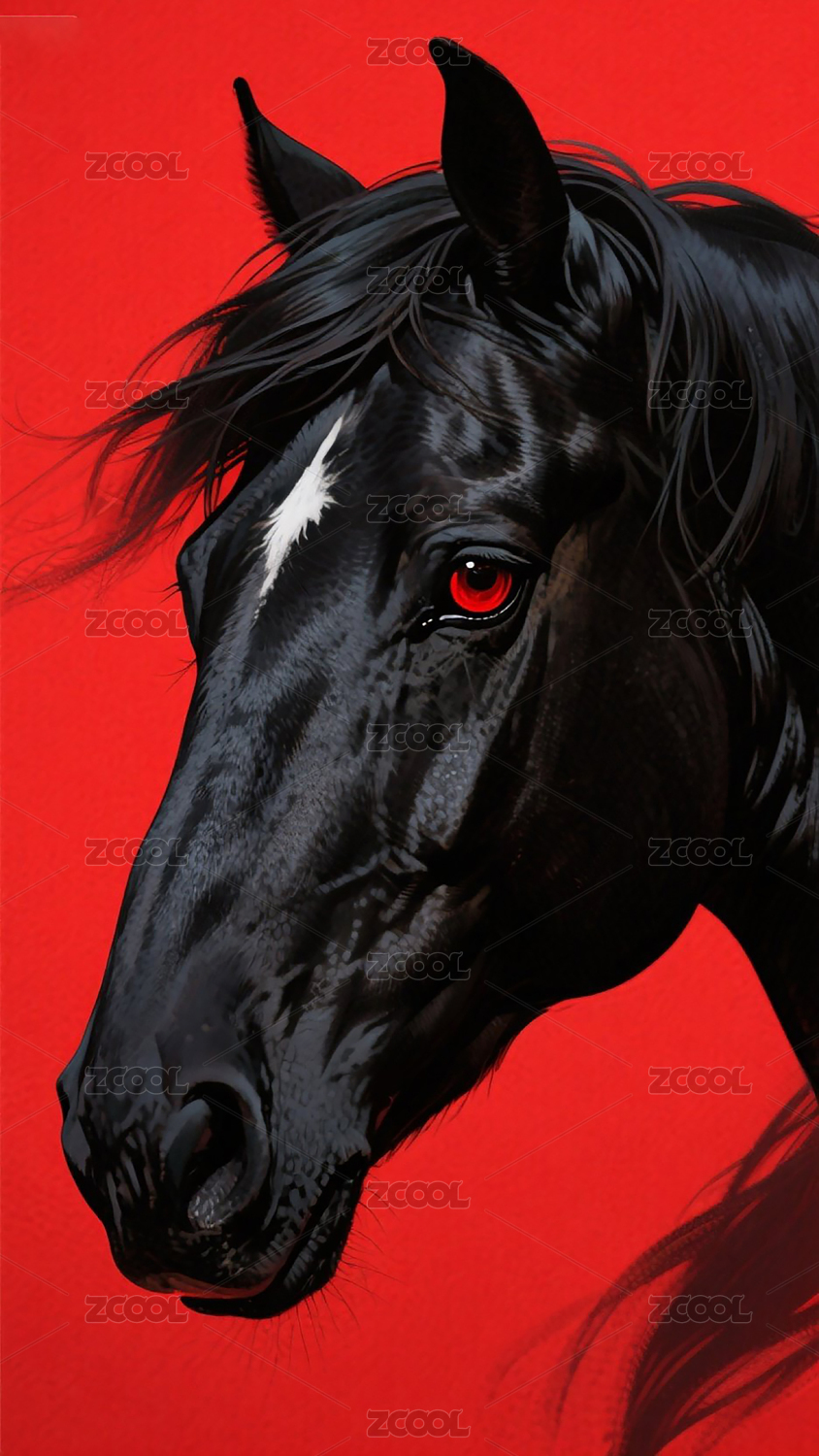 马,生肖,版画,挂画,艺术,插画,墙绘,红黑