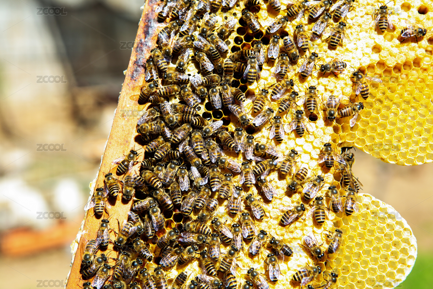 蜜蜂在蜂箱上的特写镜头,养殖蜜蜂的概念照片