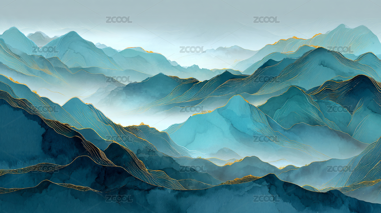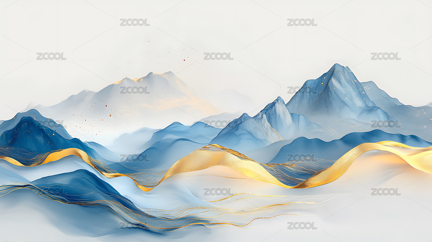 蓝金山水画风格山峦