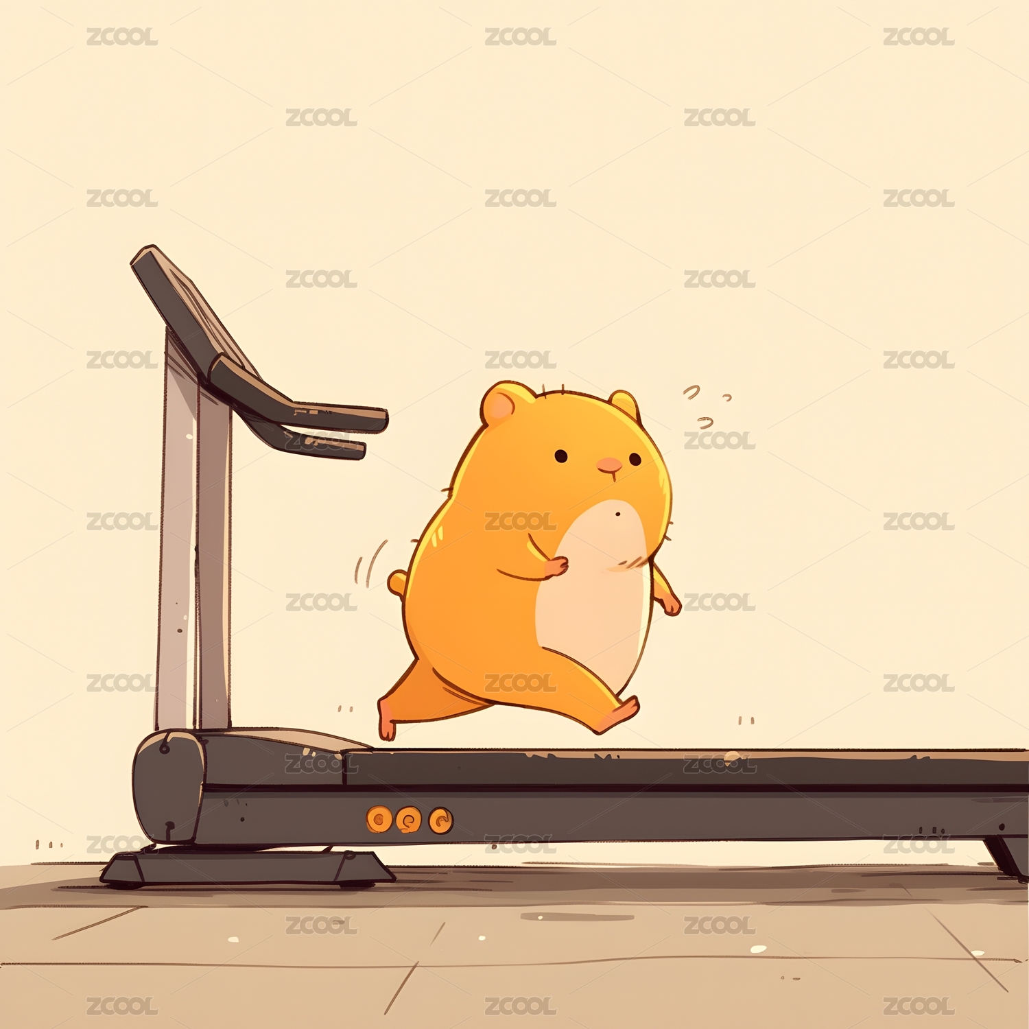 简约线条矢量风格仓鼠在跑步机上运动插画