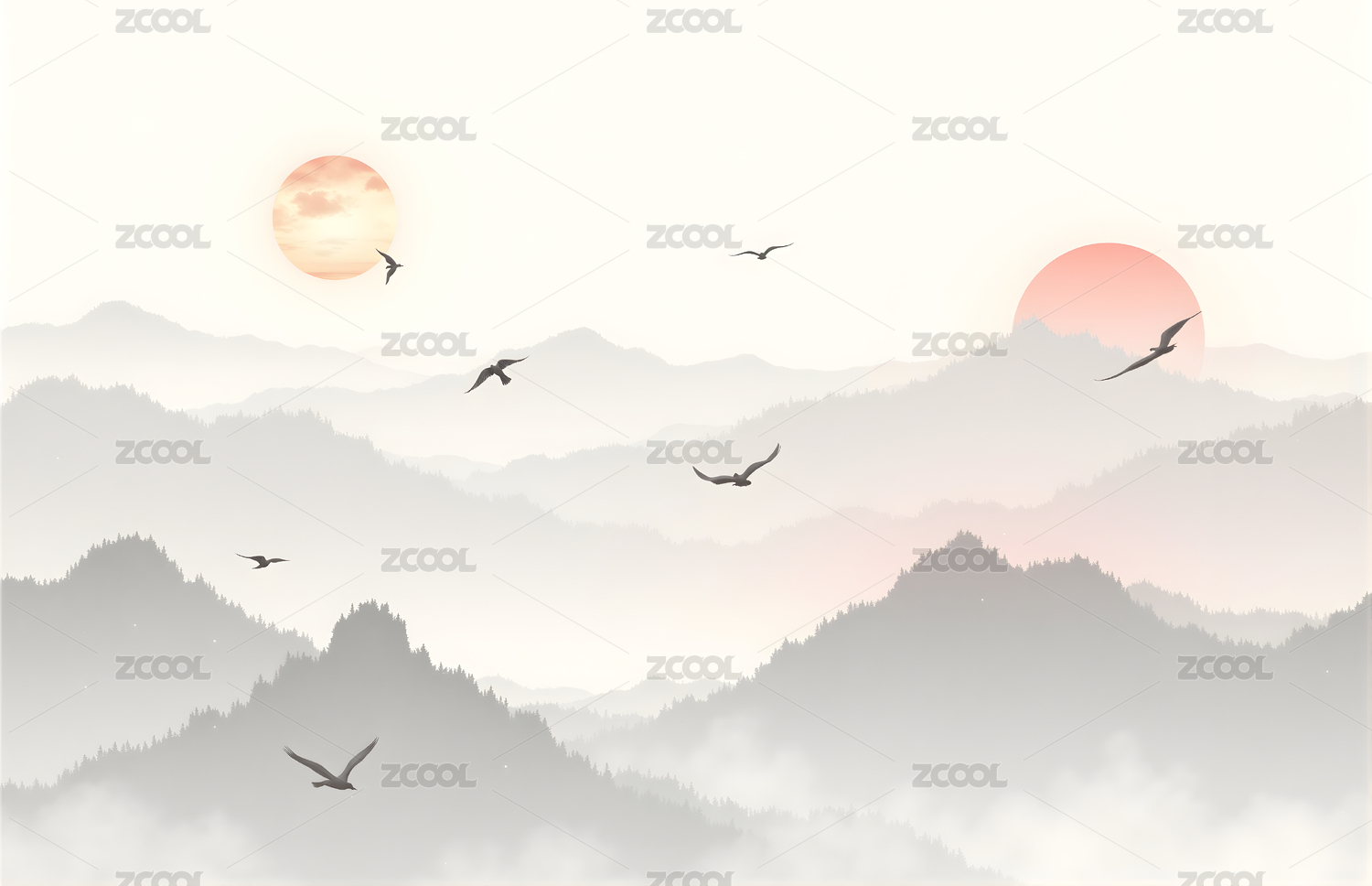插画,背景,中国风,国潮,水墨,山水画,竹子,山峰,竹林,竹叶