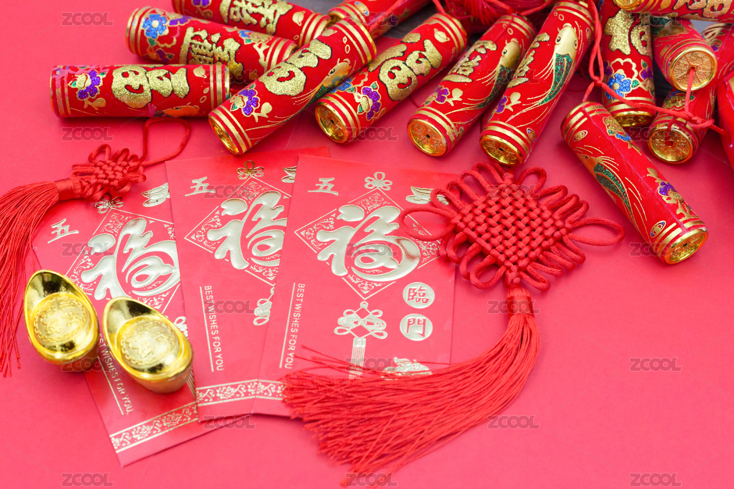 中国春节喜庆鞭炮挂件和红包