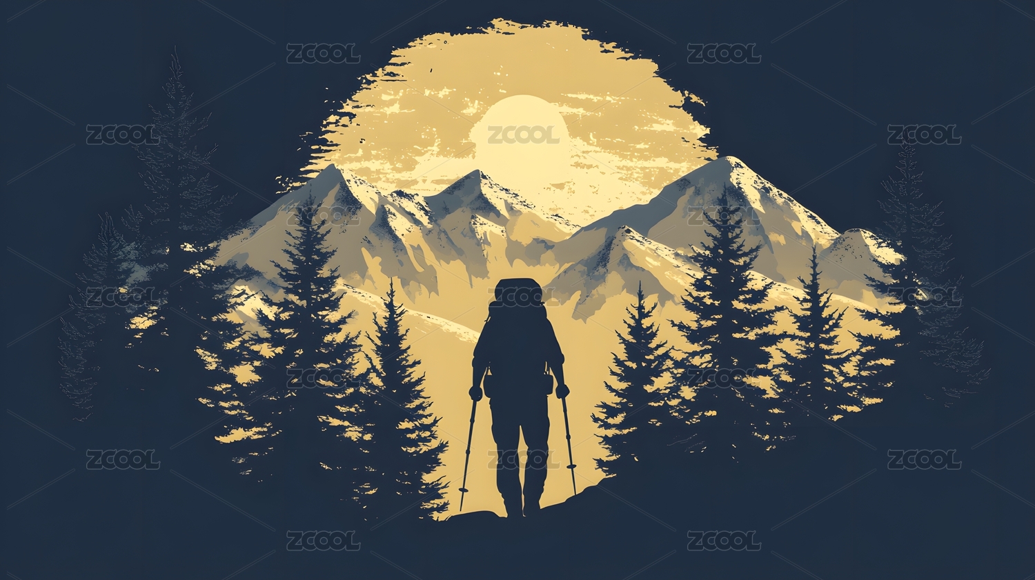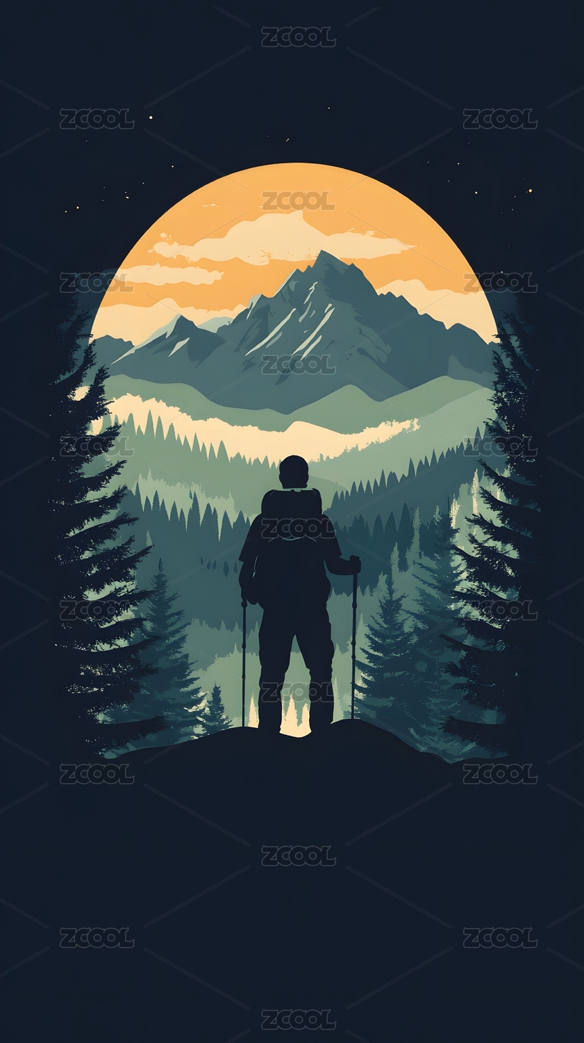 自然,登山,剪影,远足,户外,山峰,太阳,树木,森林,风景