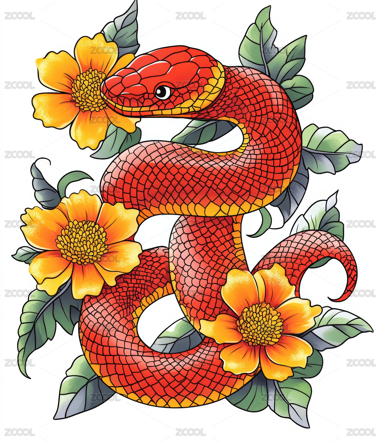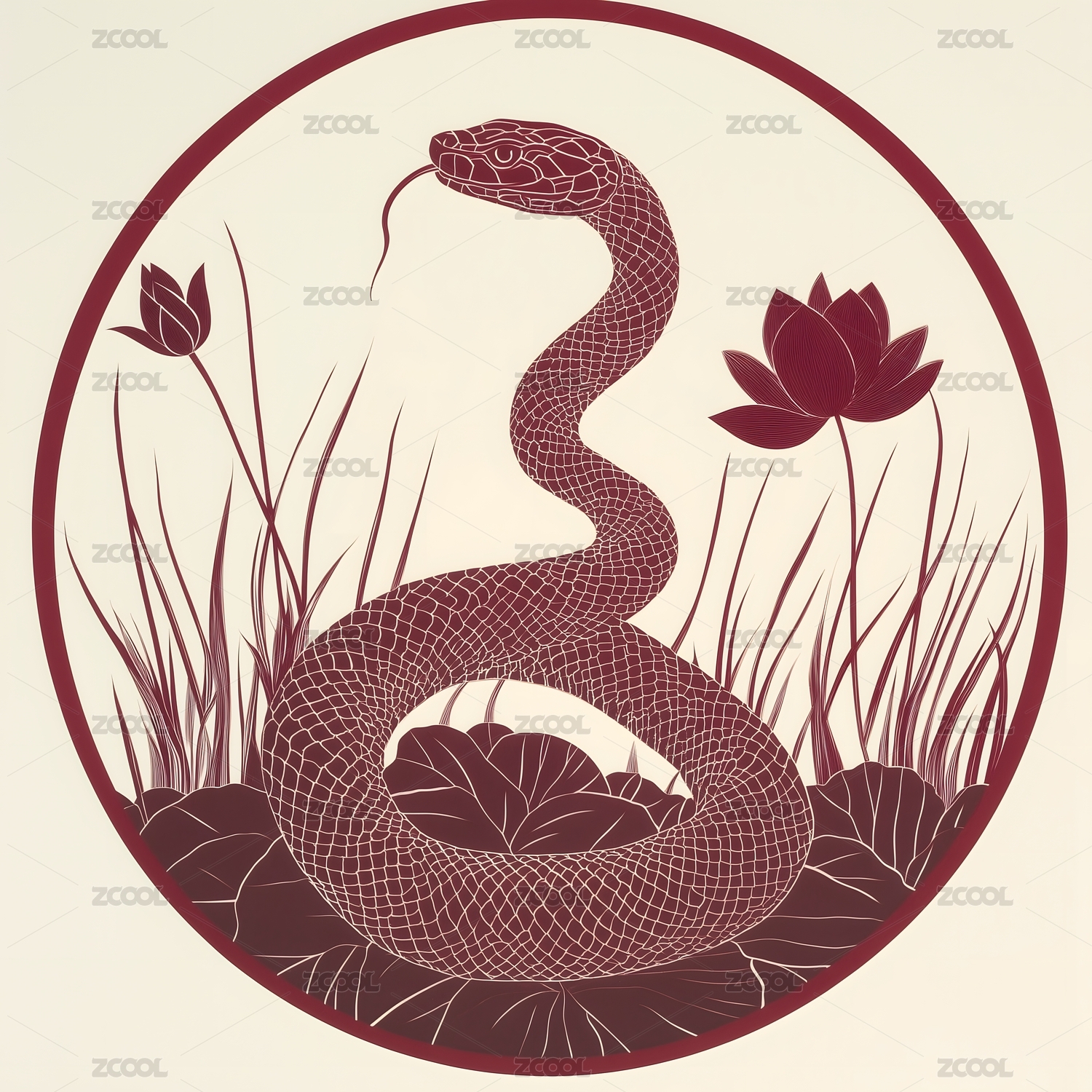 蛇年主题插画艺术剪纸图案logo徽章标志