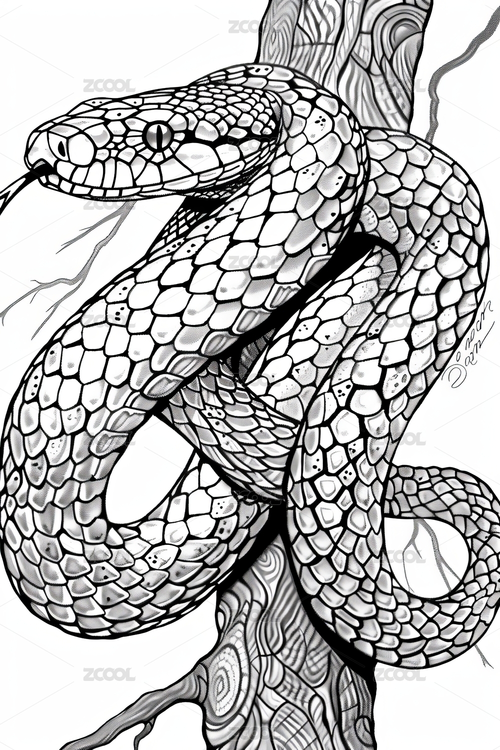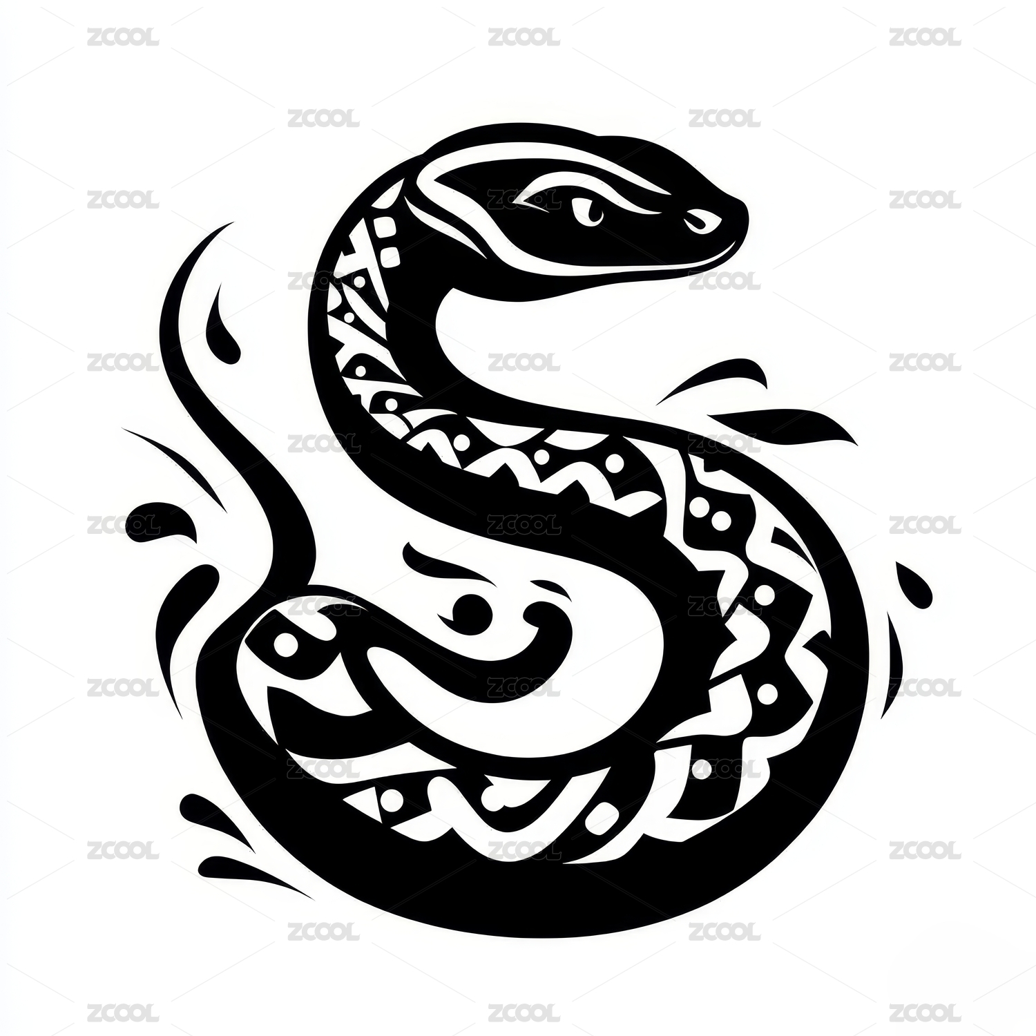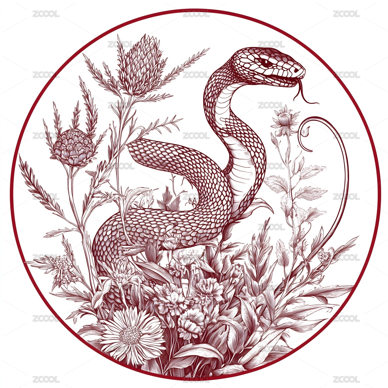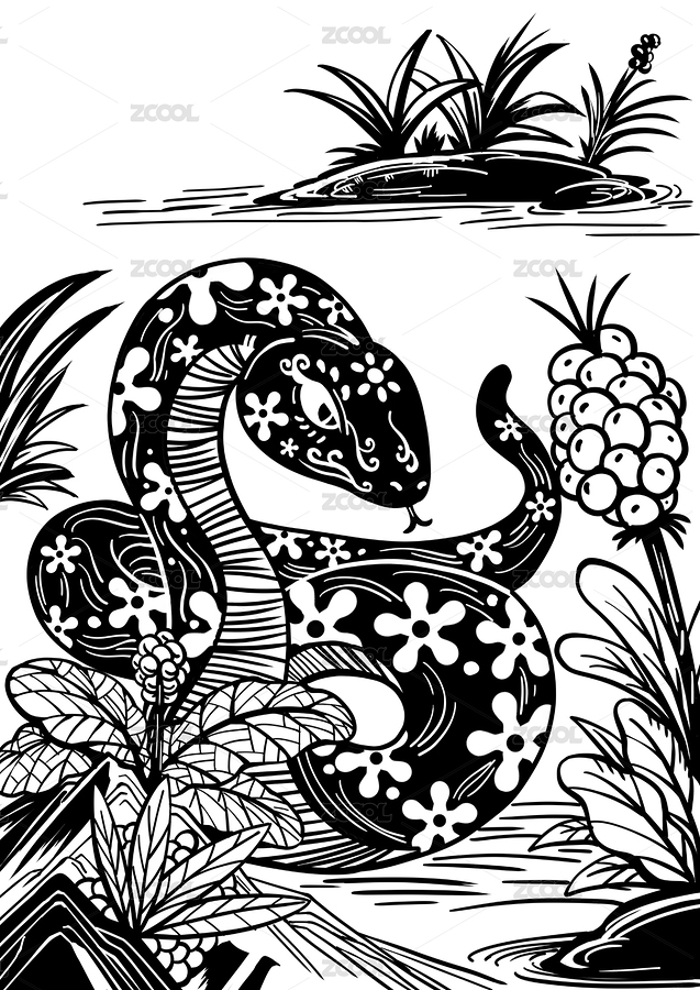 黑白画,版画,中国传统画,国风,已蛇,生肖