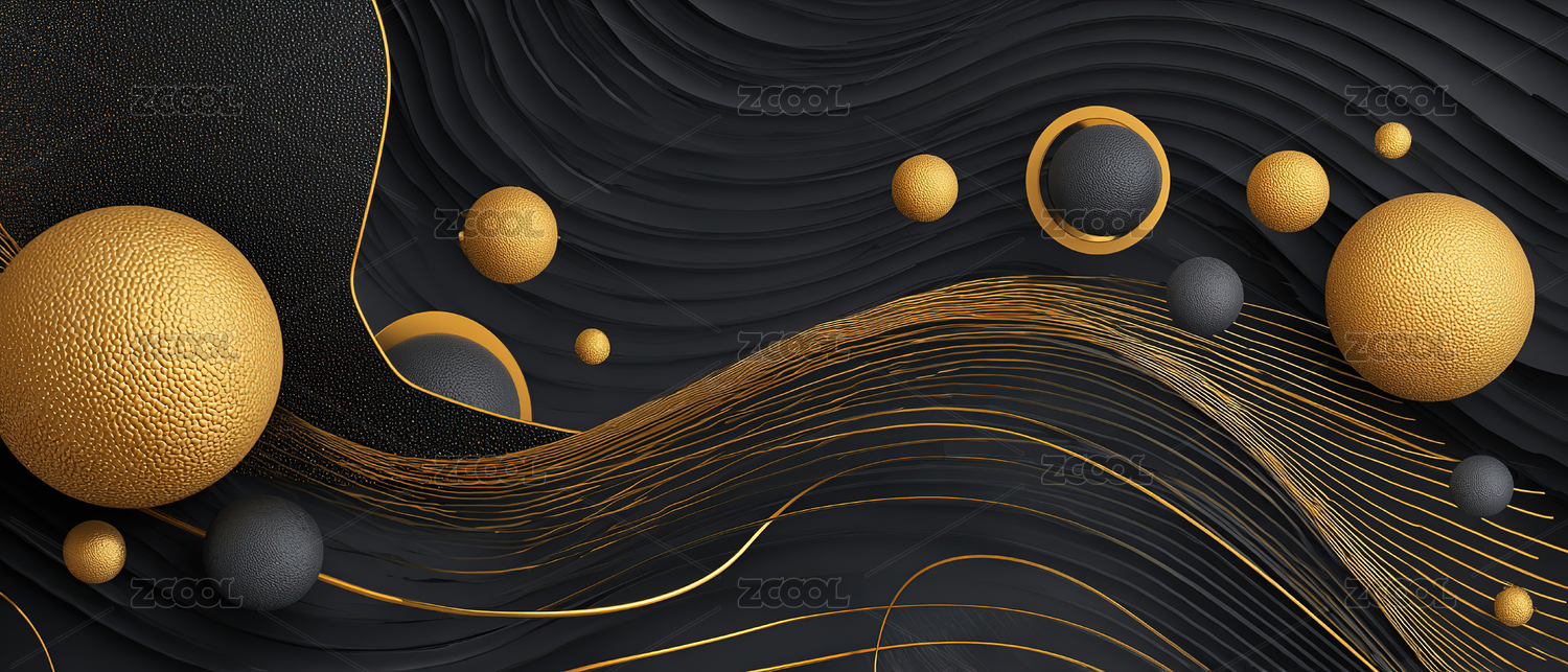 黑色,抽象,艺术,几何,立体,星球,金色,圆球,曲线,优美