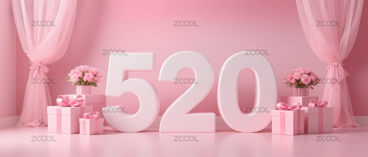 粉色背景下的520数字装饰