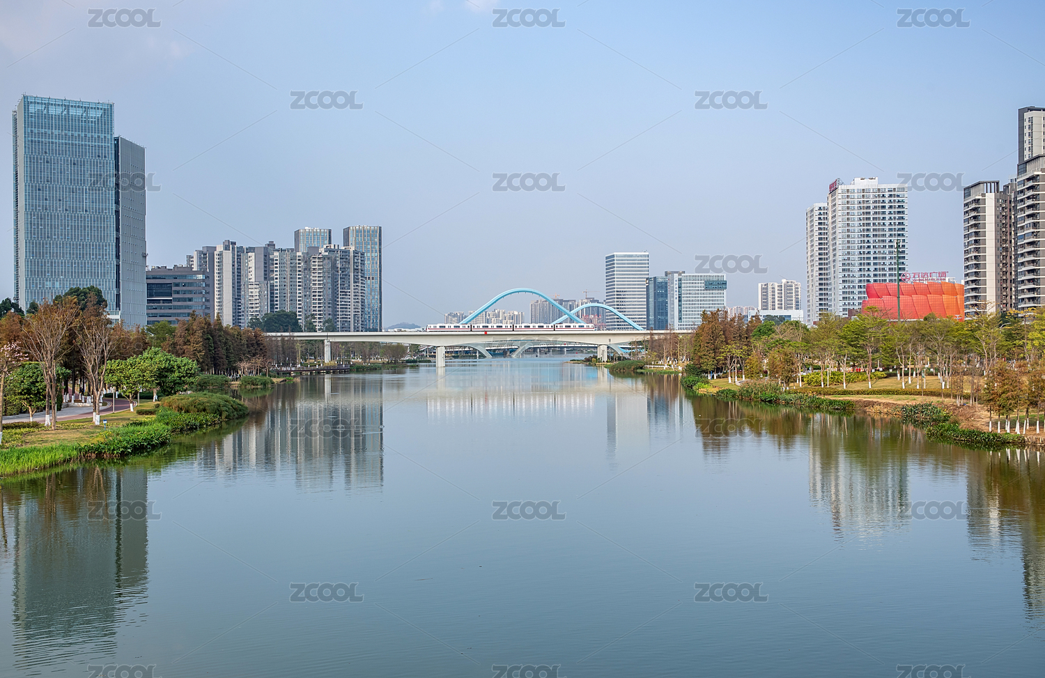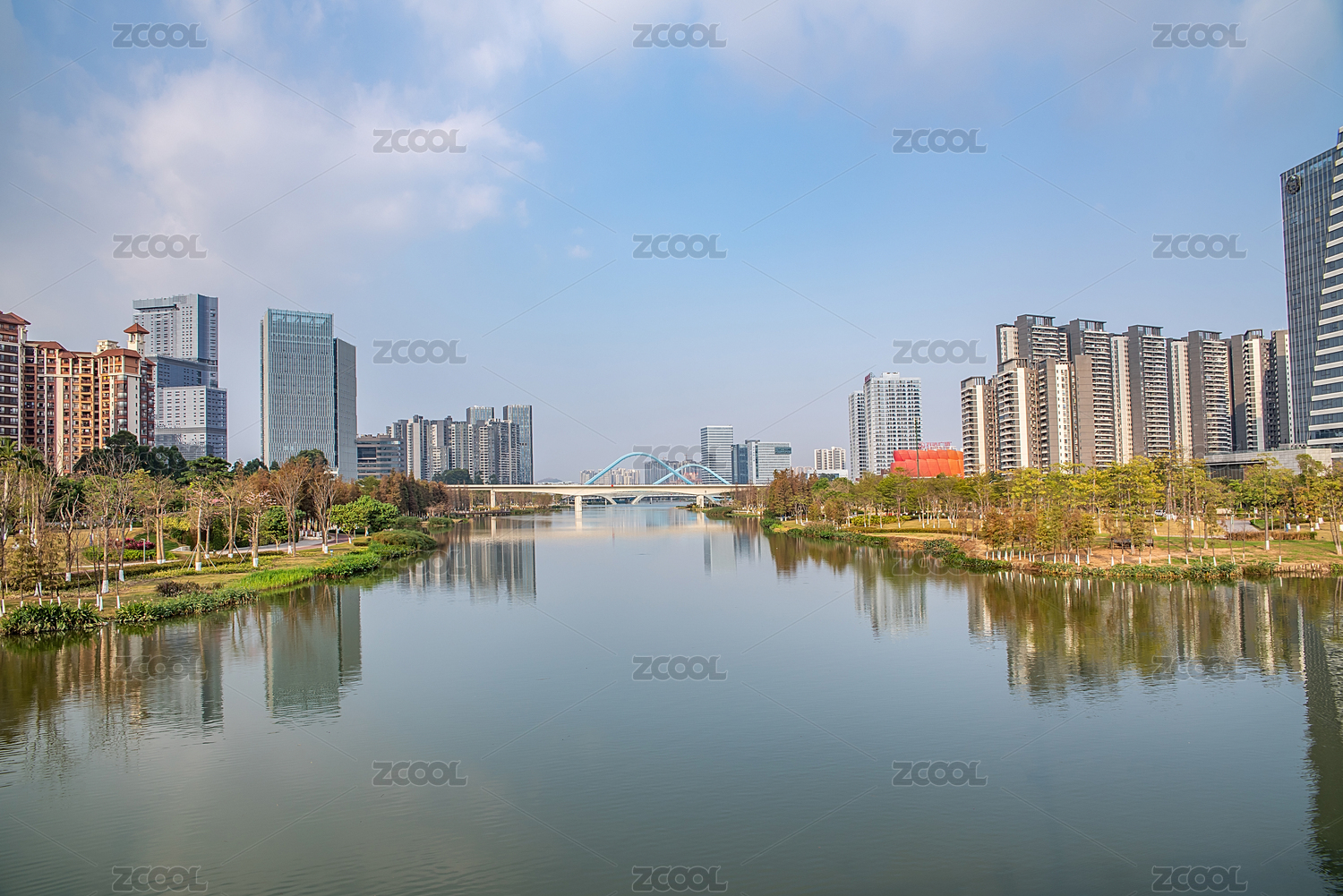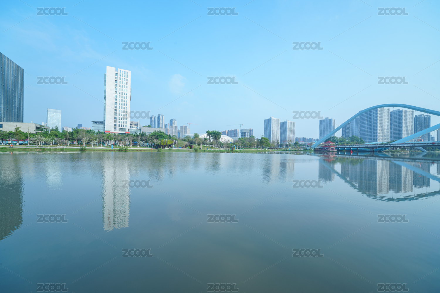 广州南沙蕉门公园蕉门河岸城市摩天大楼建筑