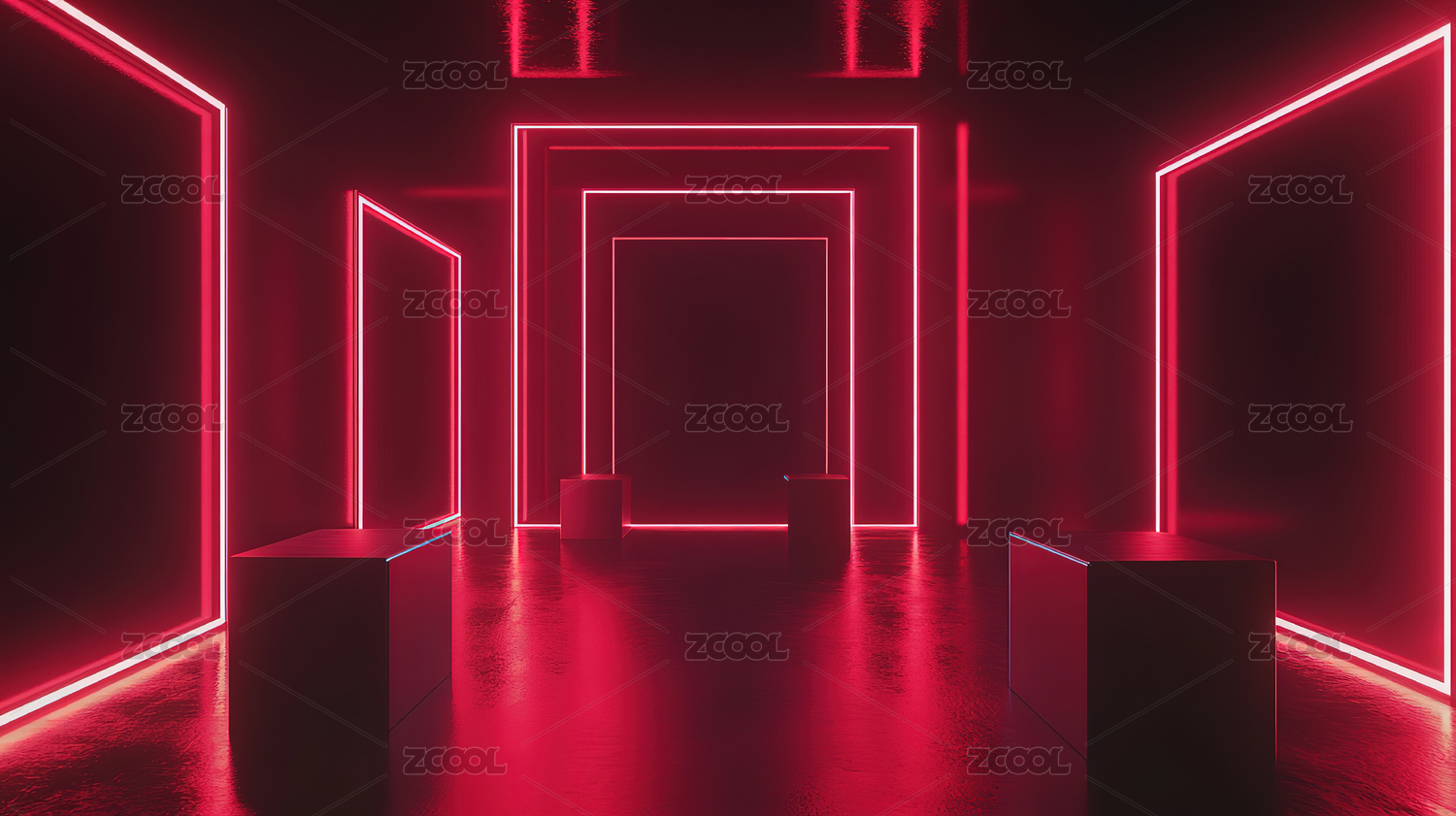 建筑,人造空间,插画,未来,背景,红色,光,舞台,设计,三维图形