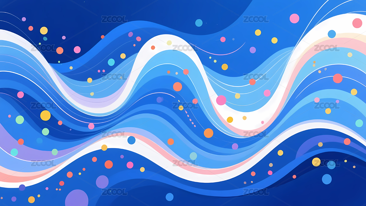 蓝色波浪线条彩点活力