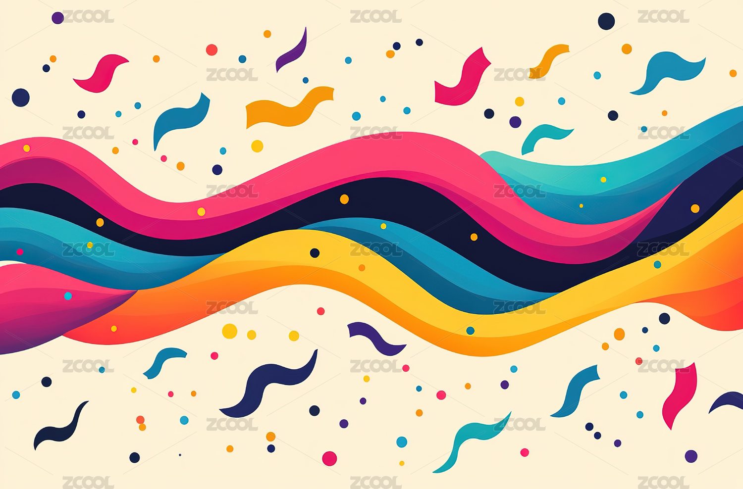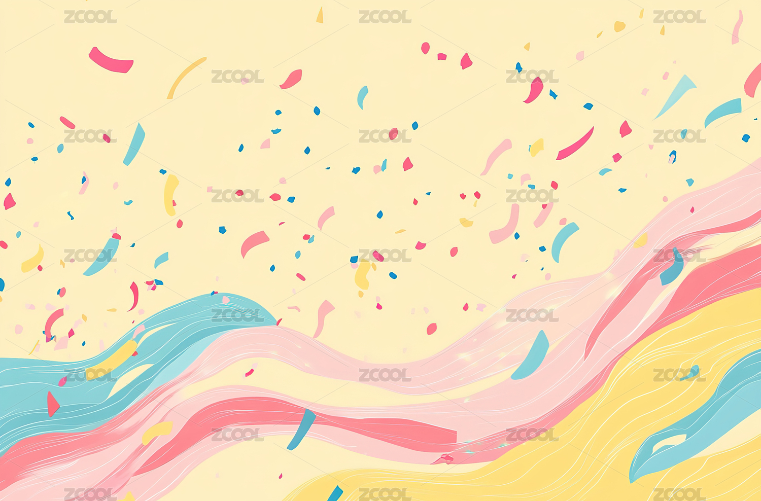 彩色丝带与彩纸飞舞