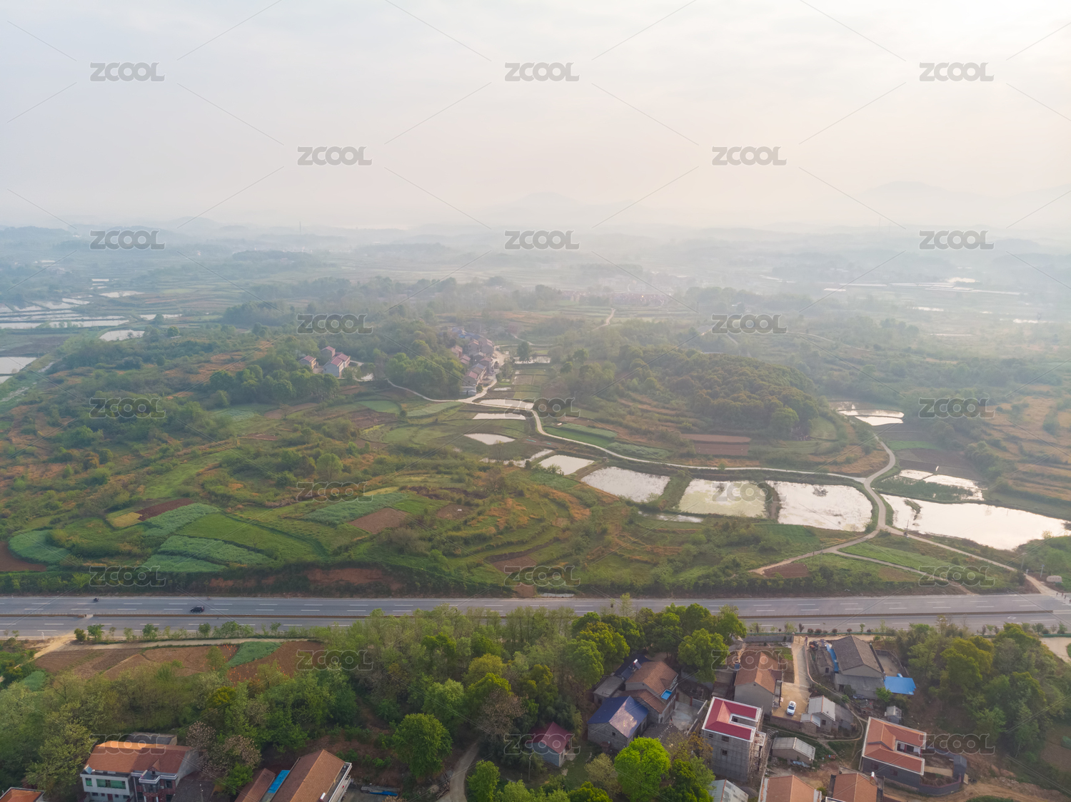 湖北江汉平原农田风光鸟瞰