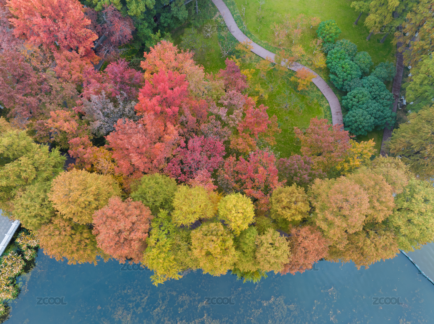湖北武汉解放公园秋季航拍风光