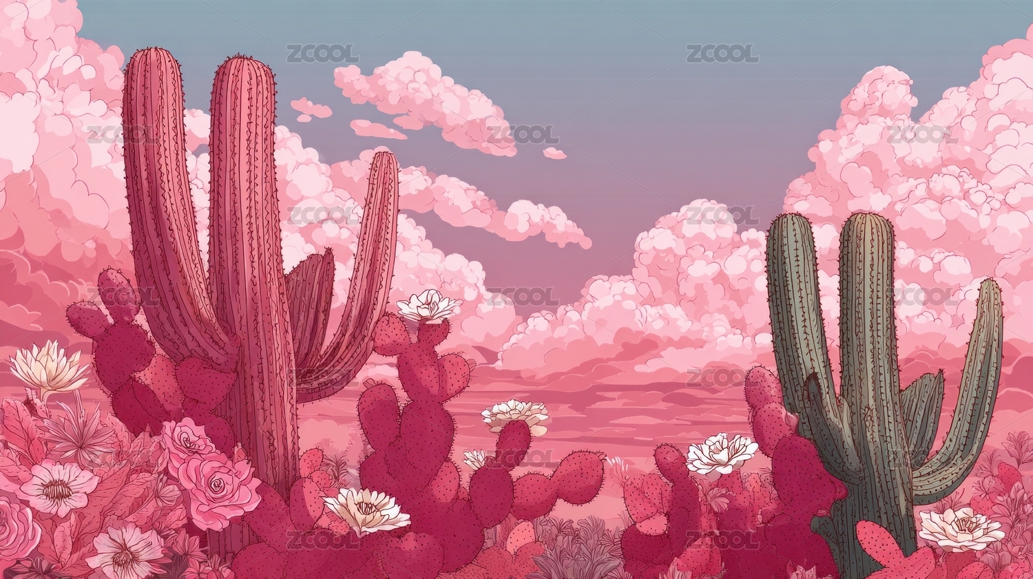 唯美仙人掌插画
