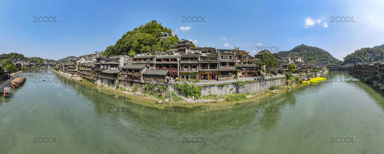中国湖南湘西凤凰古城4A景区全景图航拍