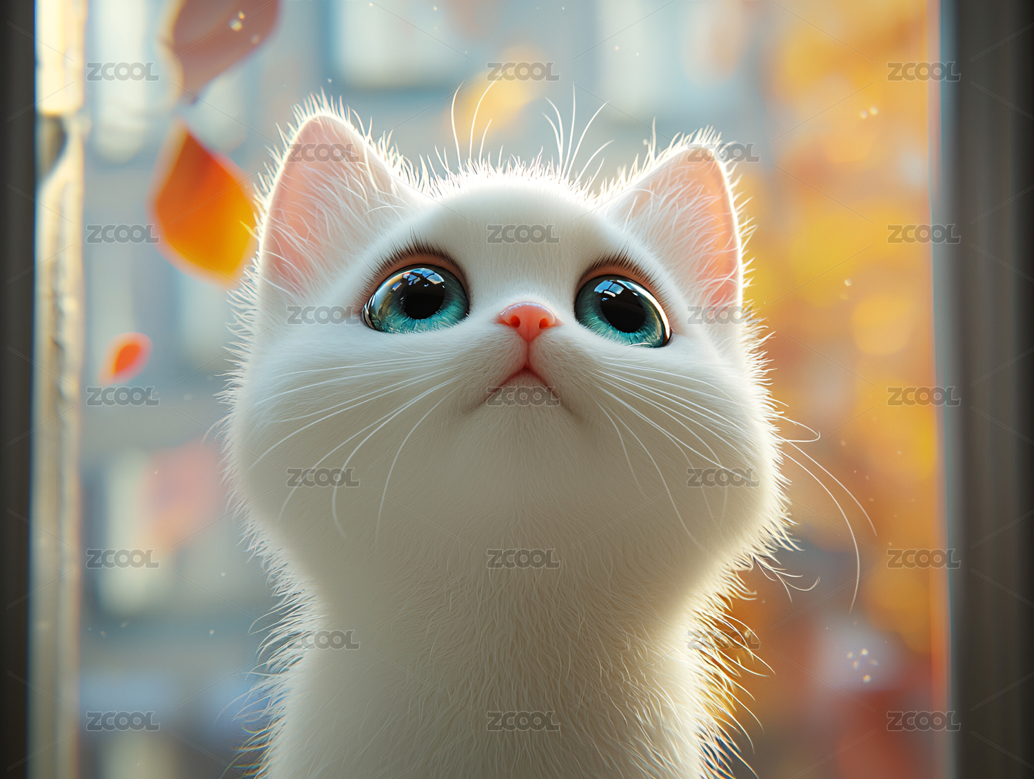 可爱,卡通,插画,白色,猫,无人,渲染图,三维插画,宠物,形象设计