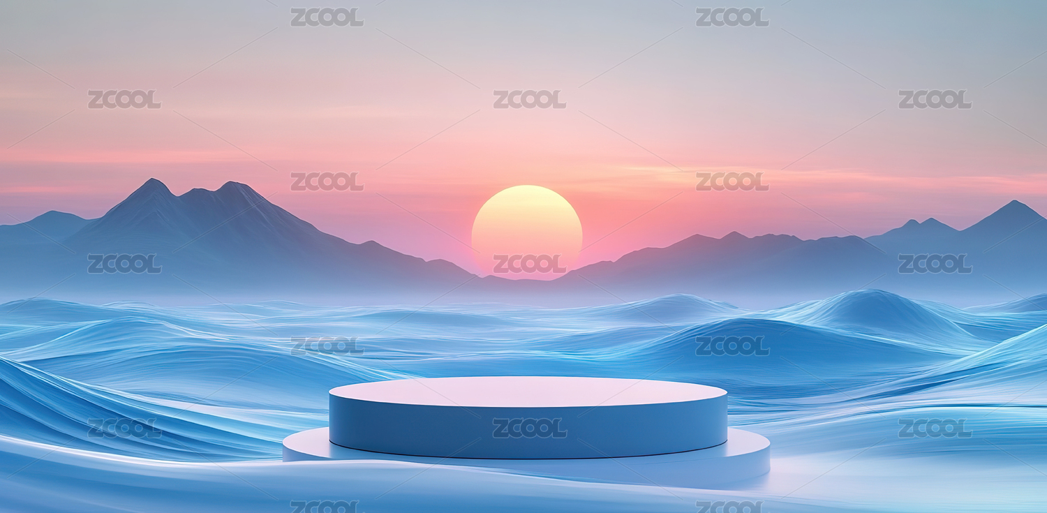 山脉背景的简约展台