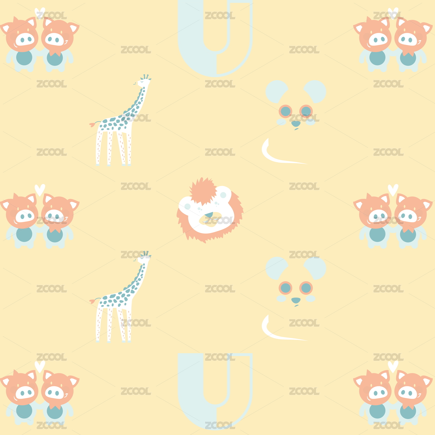 粉,包装纸,设计,卡通,动物,儿童,云,蓝色,长颈鹿,羊