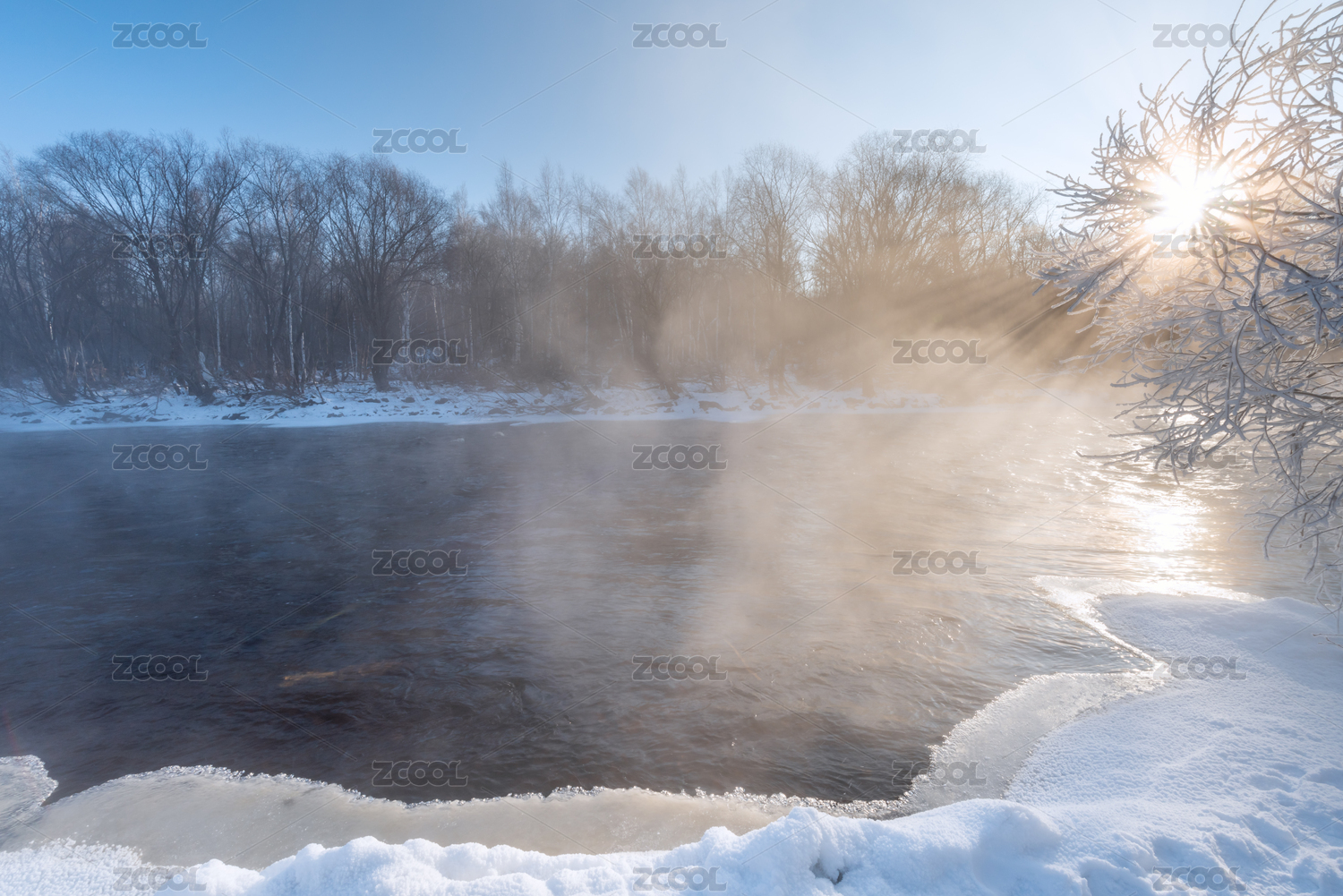 中国黑龙江伊春库尔滨河冬季日出自然景观