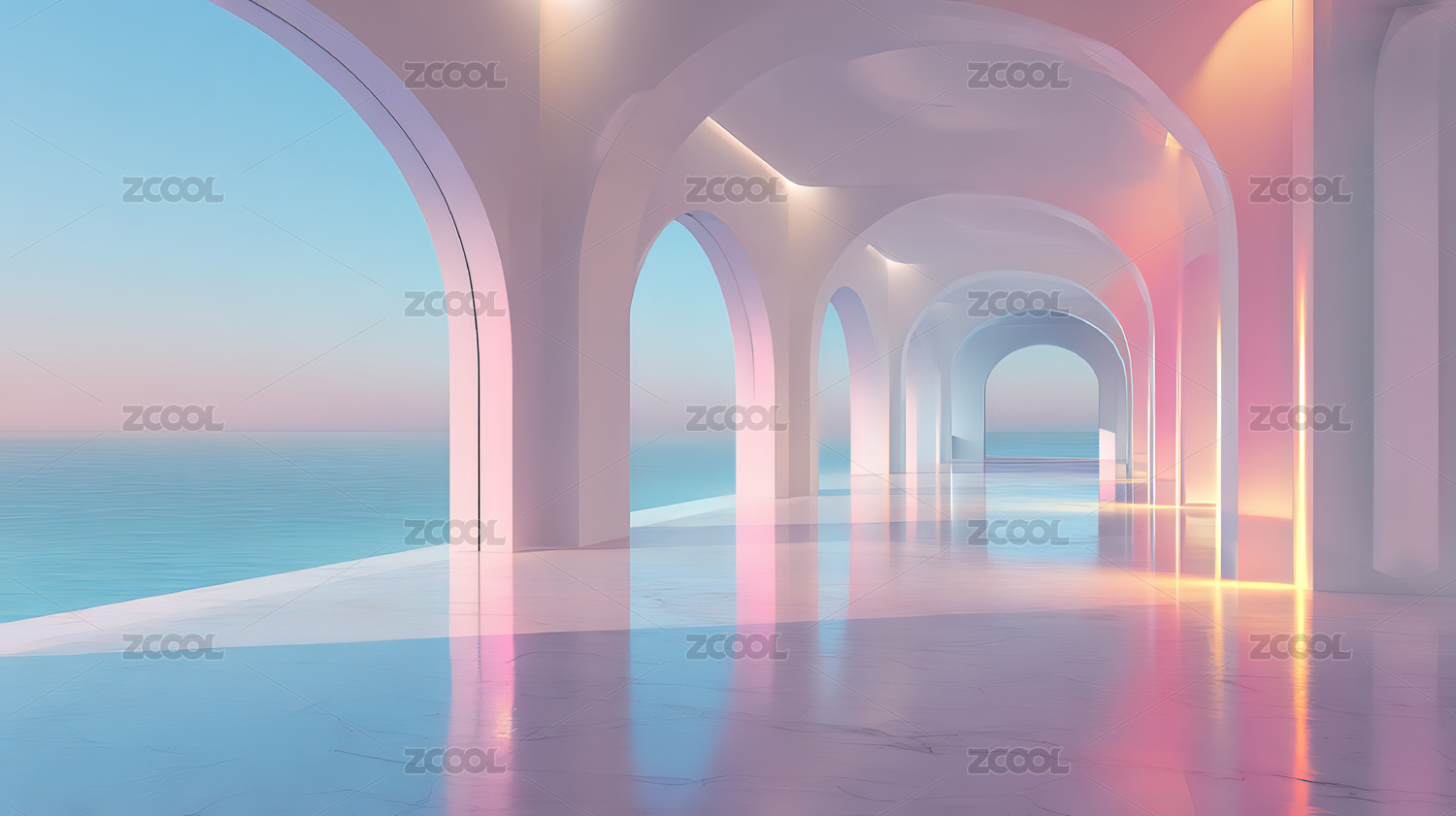拱廊通向海天交汇处