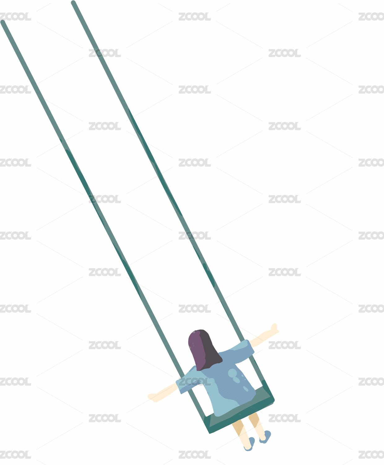 女孩荡秋千扁平插画元素