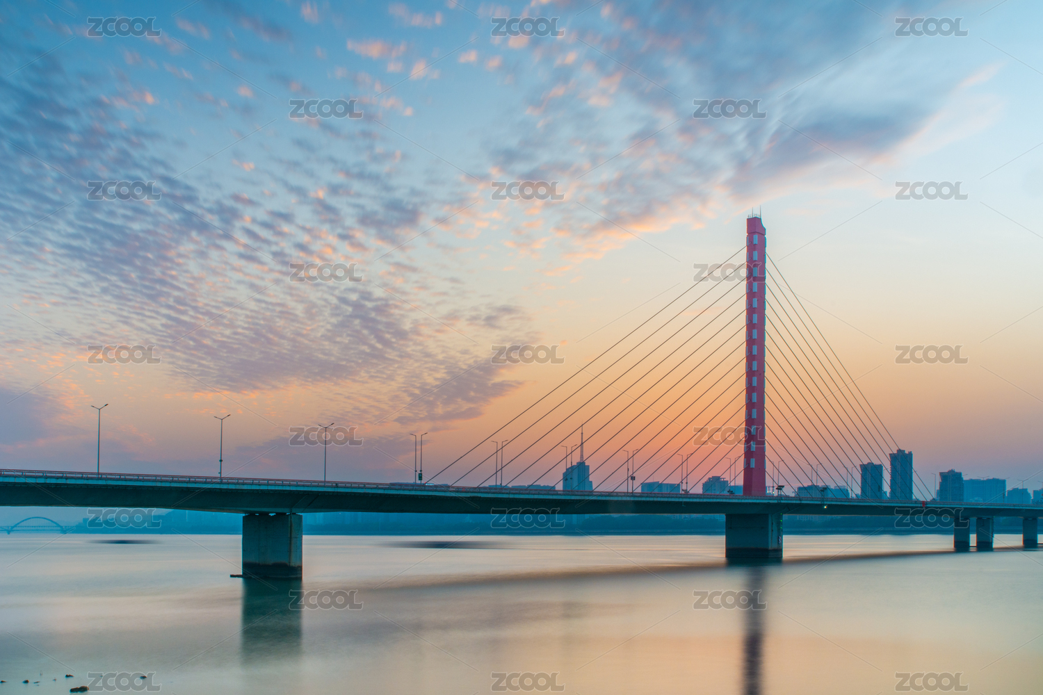杭州钱塘江之江大桥黄昏日落建筑风光