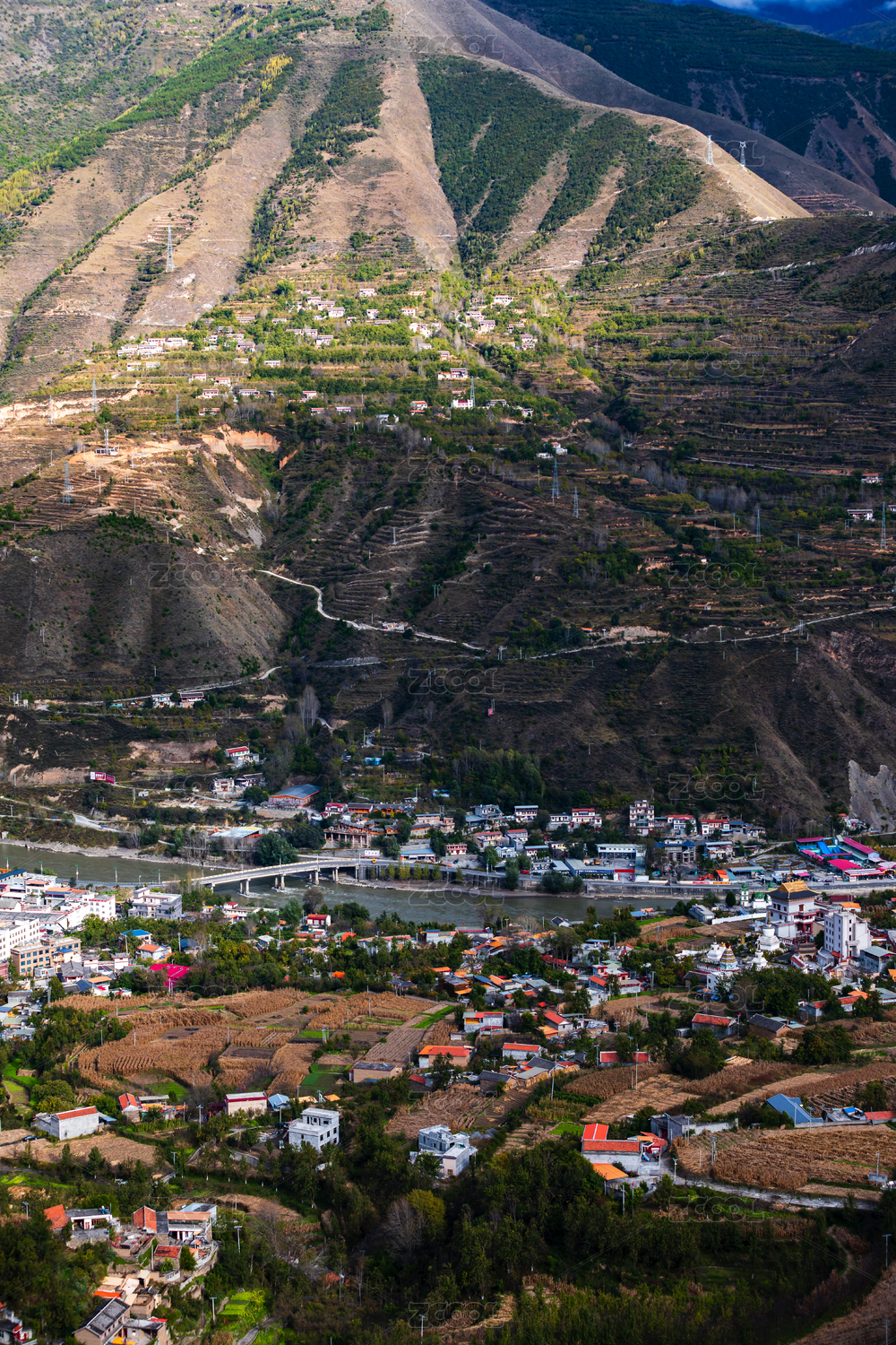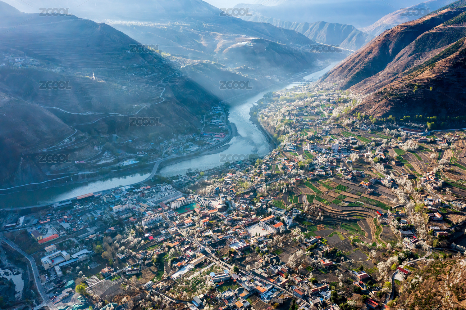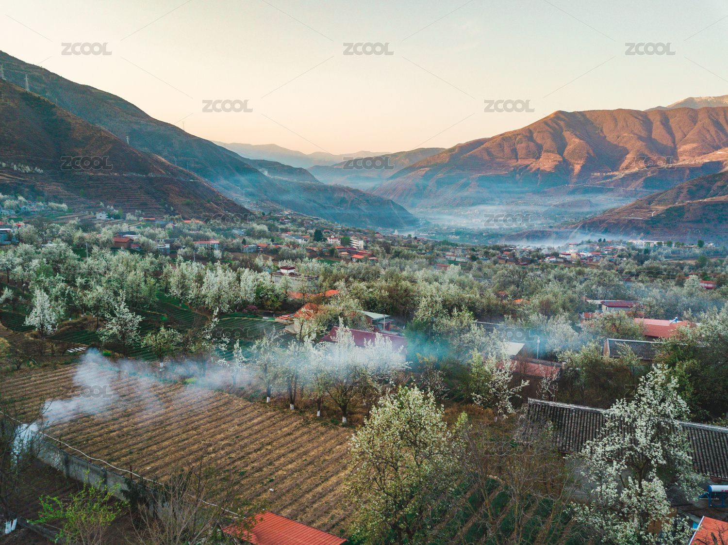 川西,金川,梨花,金川梨花,户外,清晨,炊烟,村庄,晨雾,日出