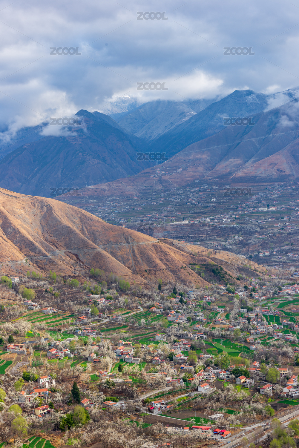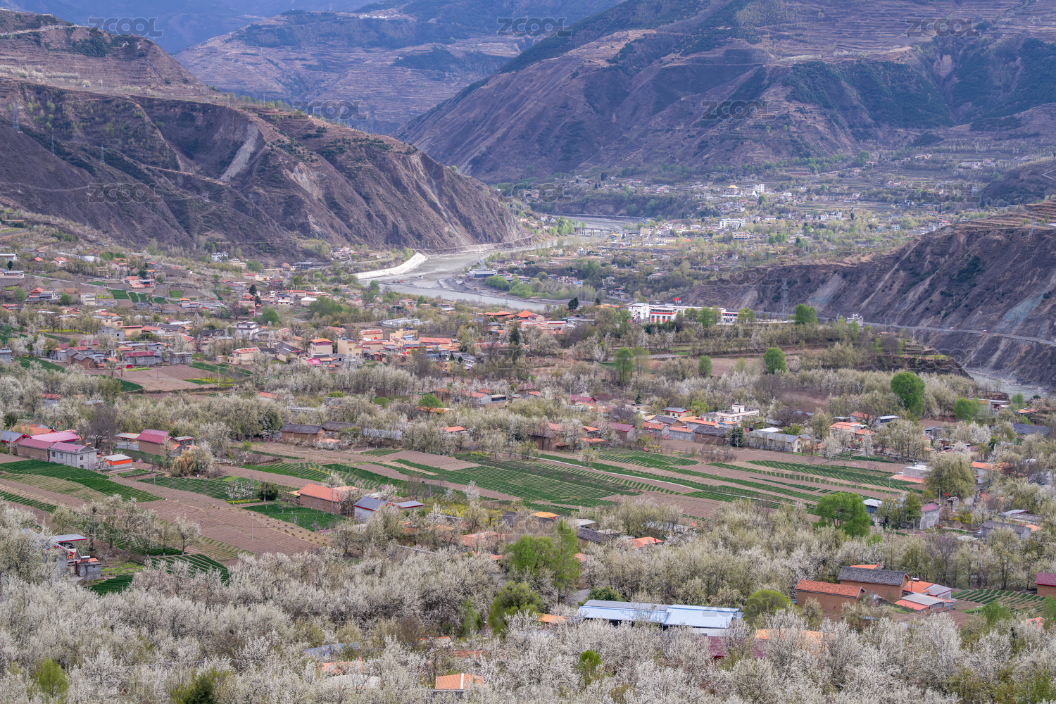 四川阿坝州中路藏寨金川白花山涧梨花盛放