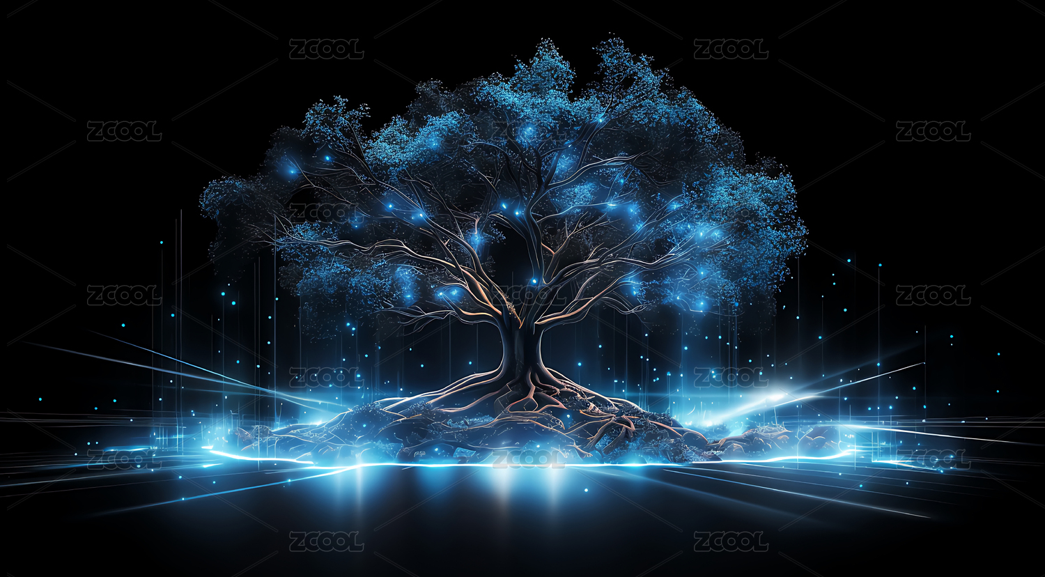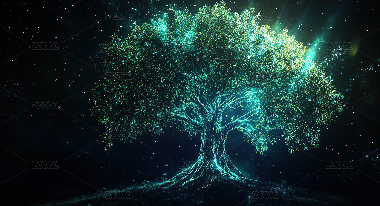 生命树,绿色,全息,数字,影像,科技,光芒,黑色,背影,光束