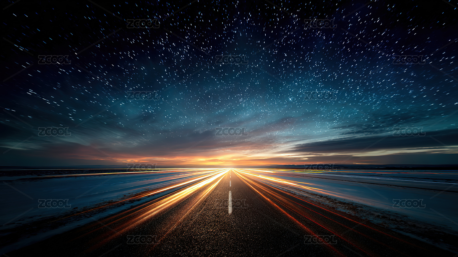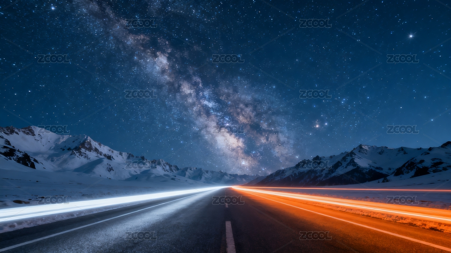 梦幻,星空,夜晚,星芒,光影,蓝色,道路,微光,山脉,山峰