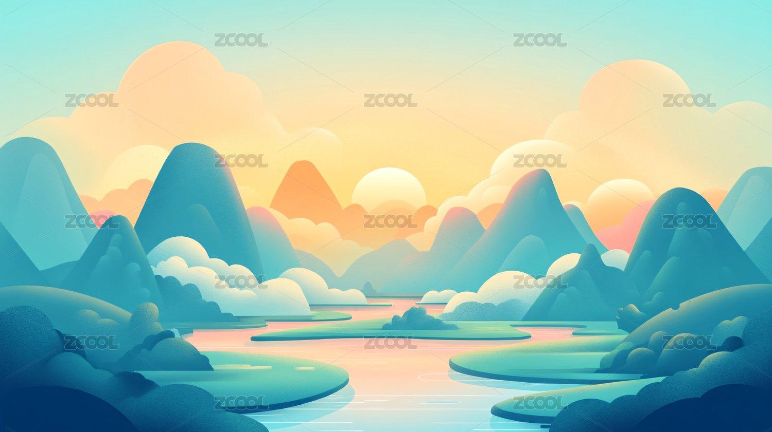 扁平肌理风景壁纸插画