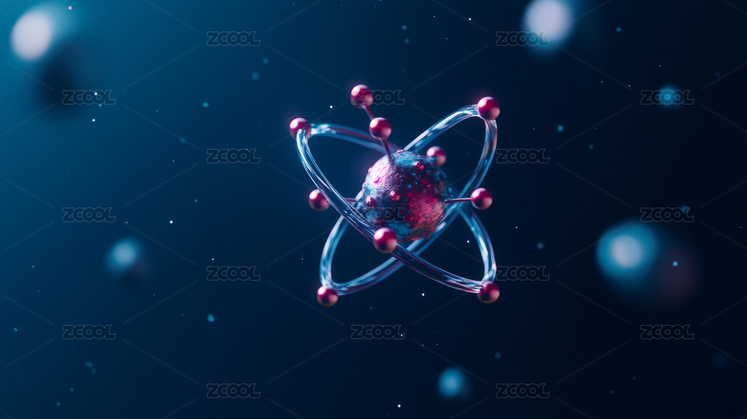 3D,插画,科学,微观,研究,概念,电子,蓝色,未来,原子
