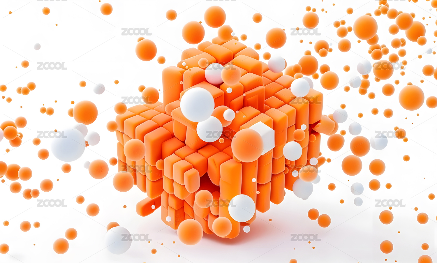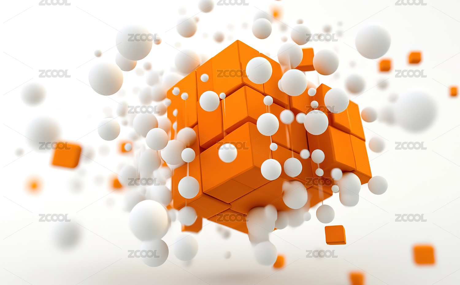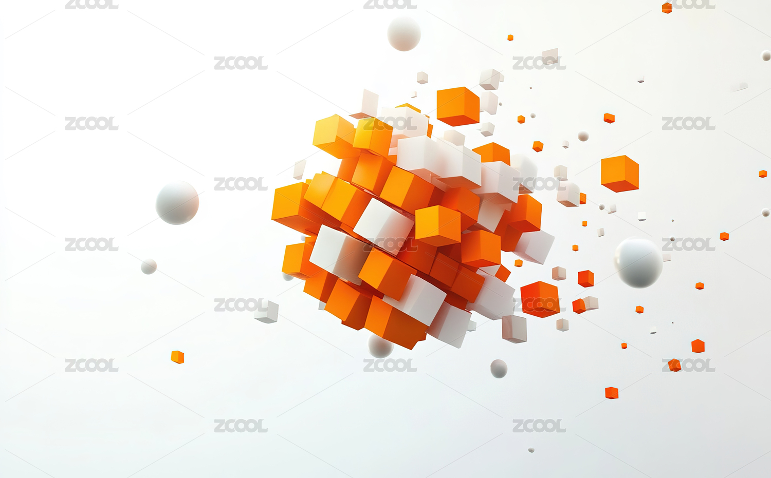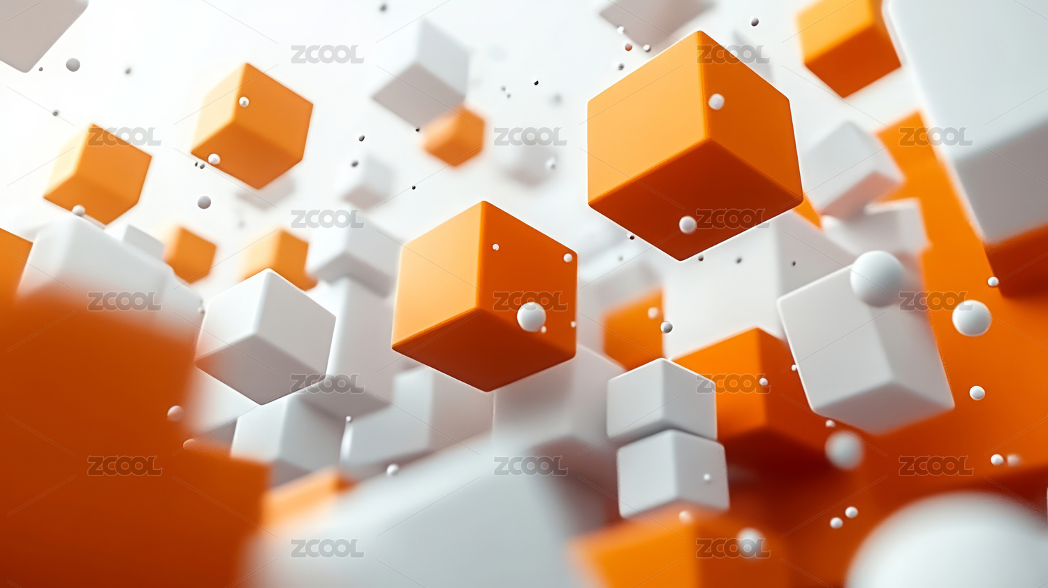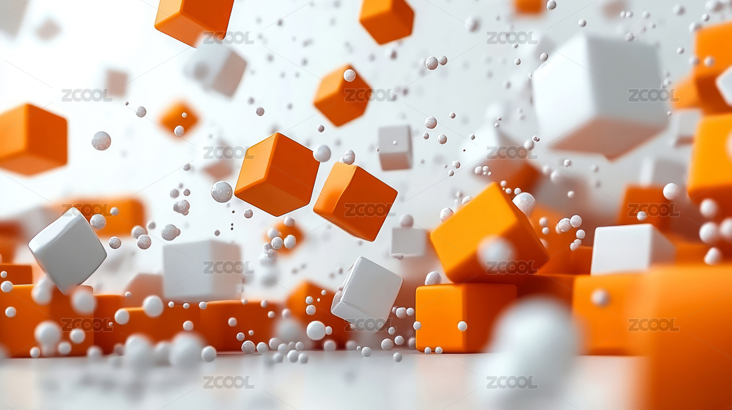 抽象悬浮空中橙色白色几何立方体科技背景