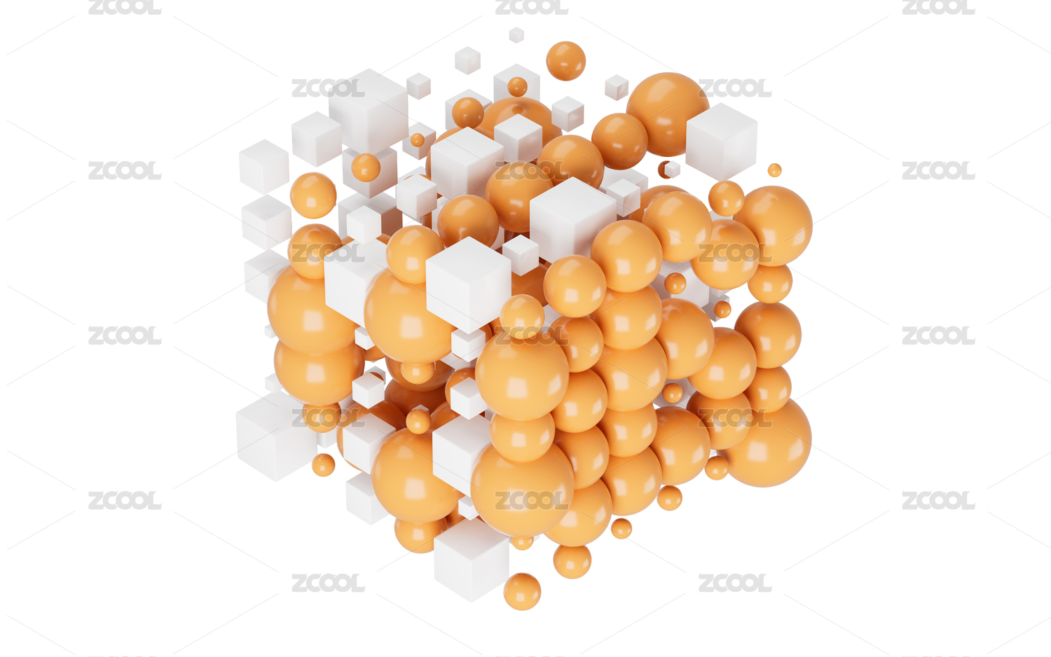 抽象的的球体与立方体背景3D渲染