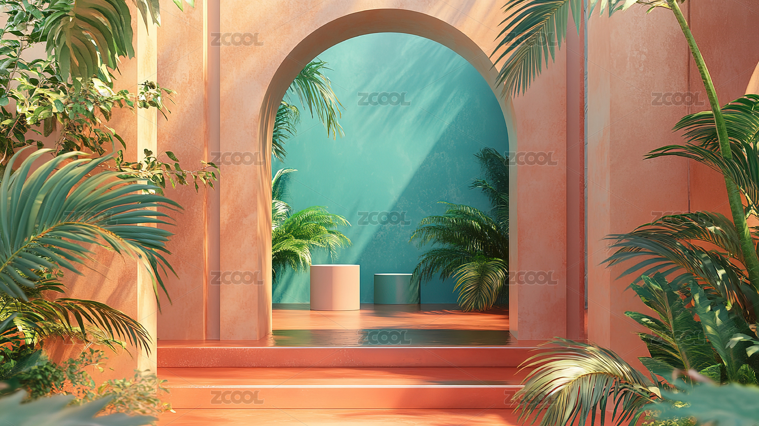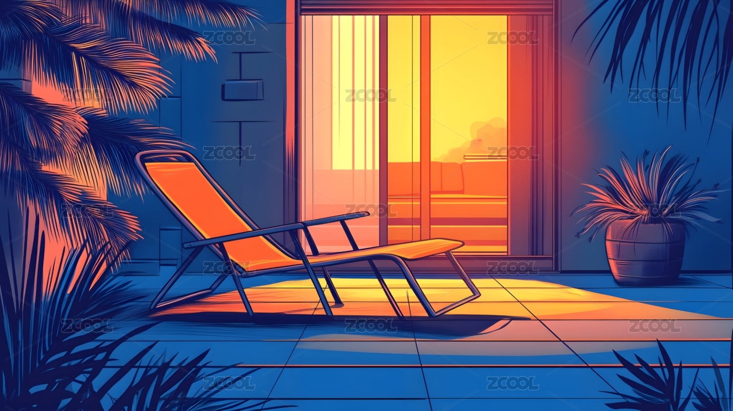 主视觉,卡通,场景,插图,夏天,春天,植物,风景,热带植物,天空