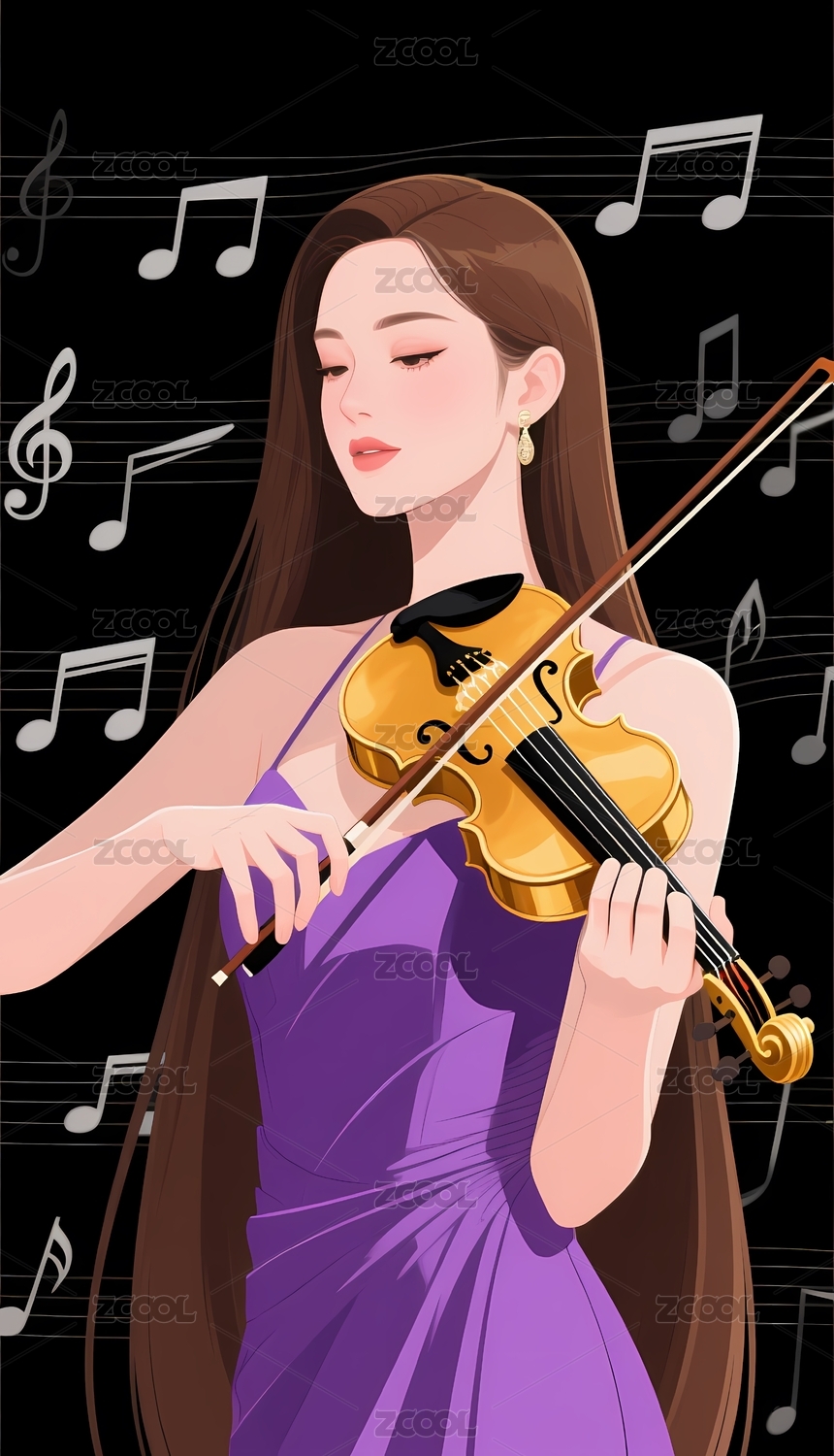 女生拉小提琴插画