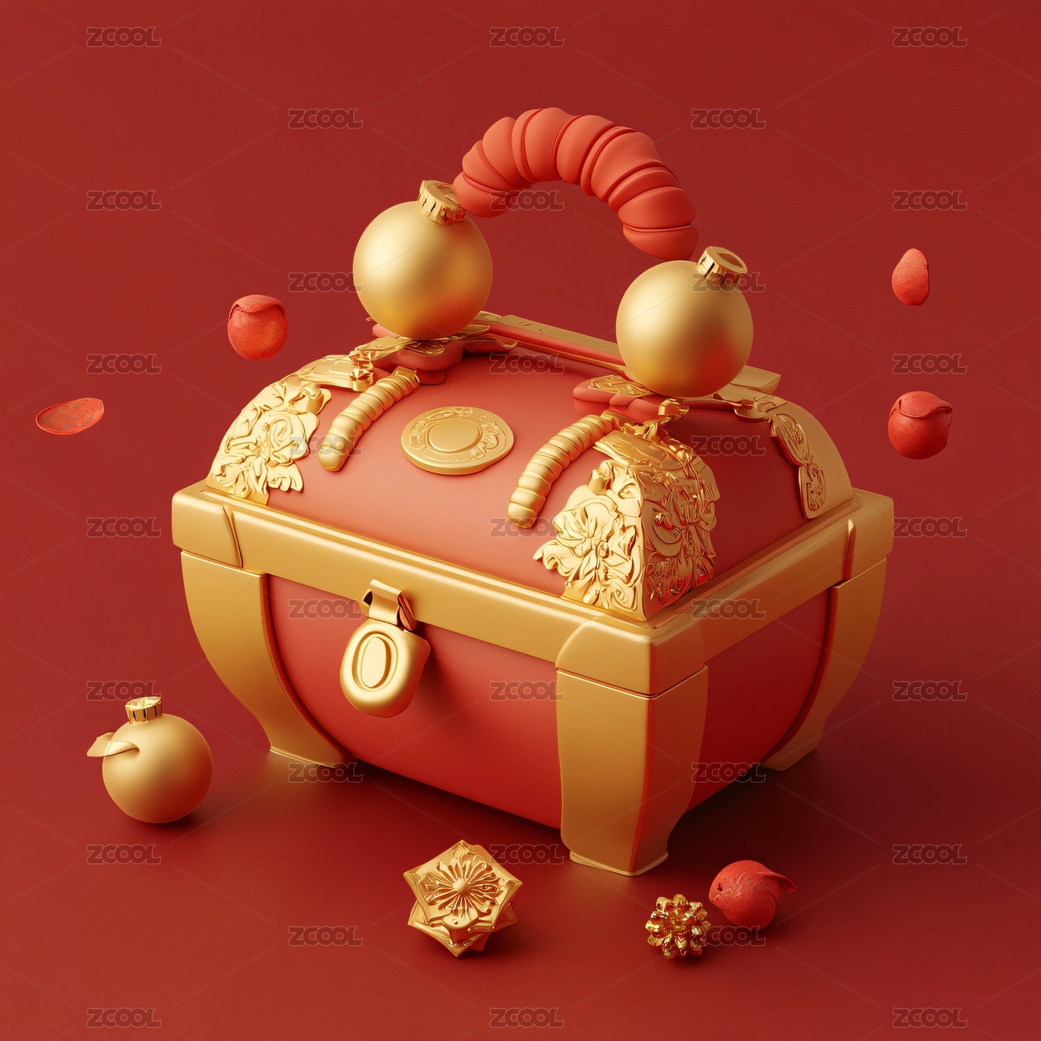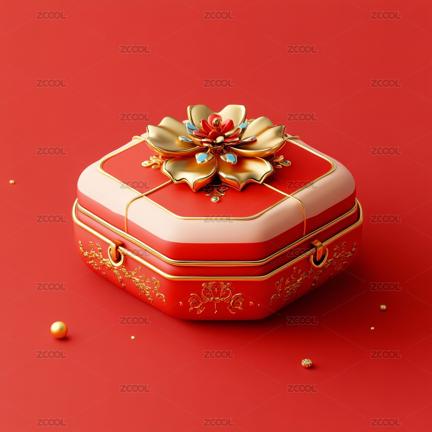 中国风国朝礼品盒3D渲染装饰元素