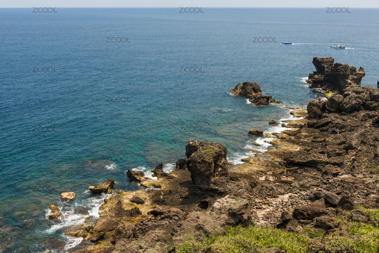 快艇掠过台湾垦丁猫鼻头公园的太平洋水域