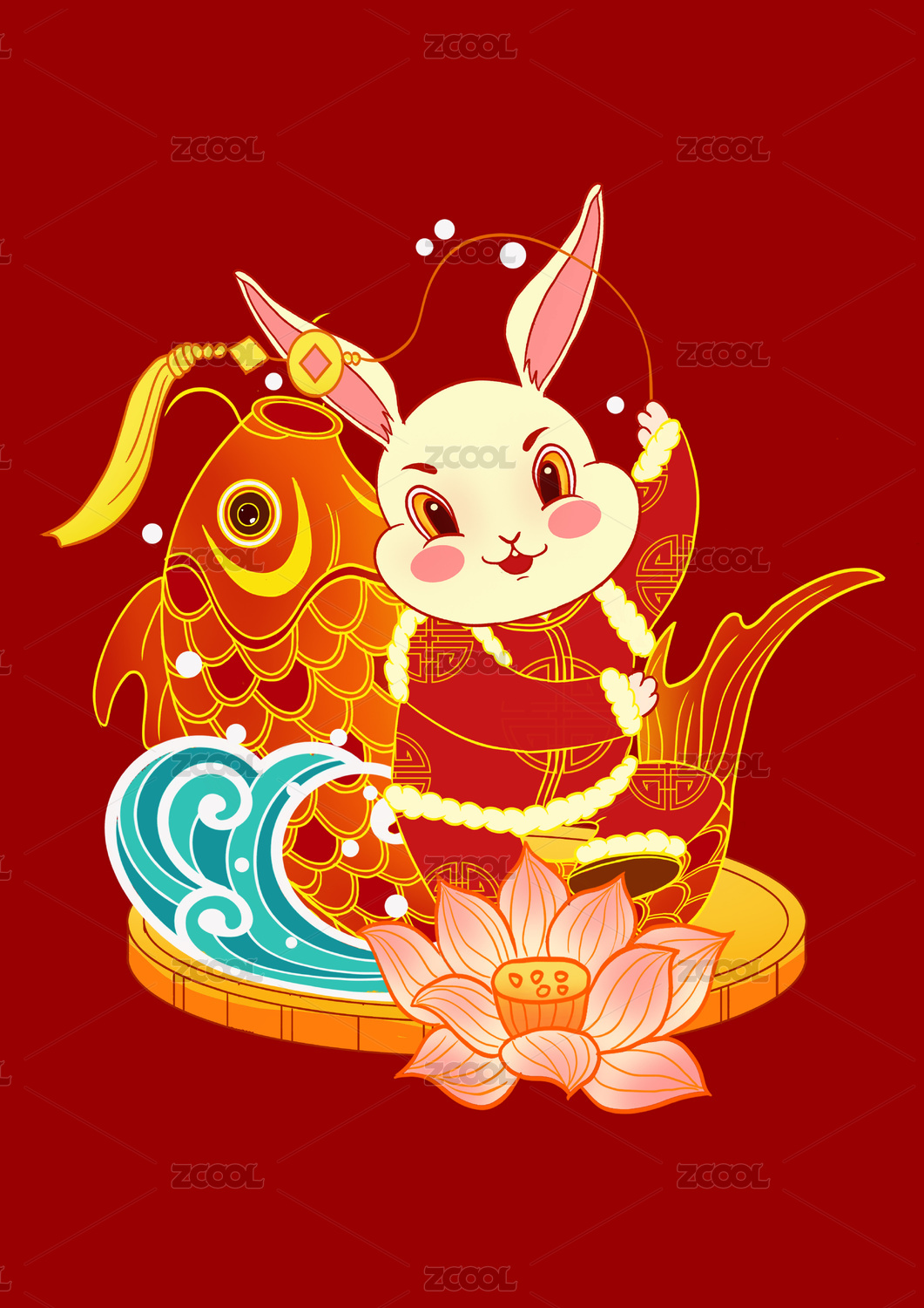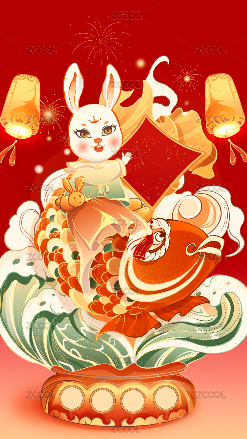 HECFOTR2023,兔年,兔子,2023,新年,年画,喜庆,灯笼,锦鲤,鲤鱼
