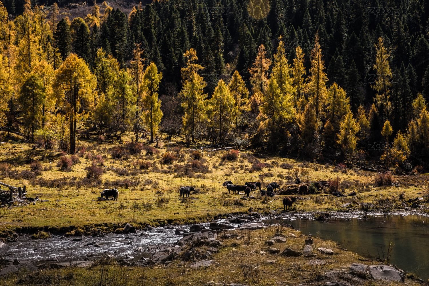 四川阿坝小金二河口大板村玛嘉沟牧场秋色