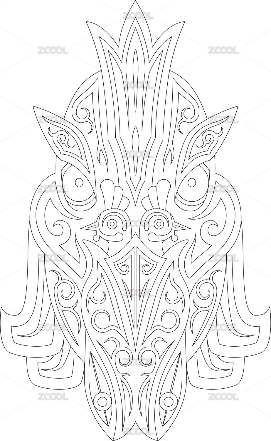 十二生肖鸡潮流中国风纹样印花图案矢量插画