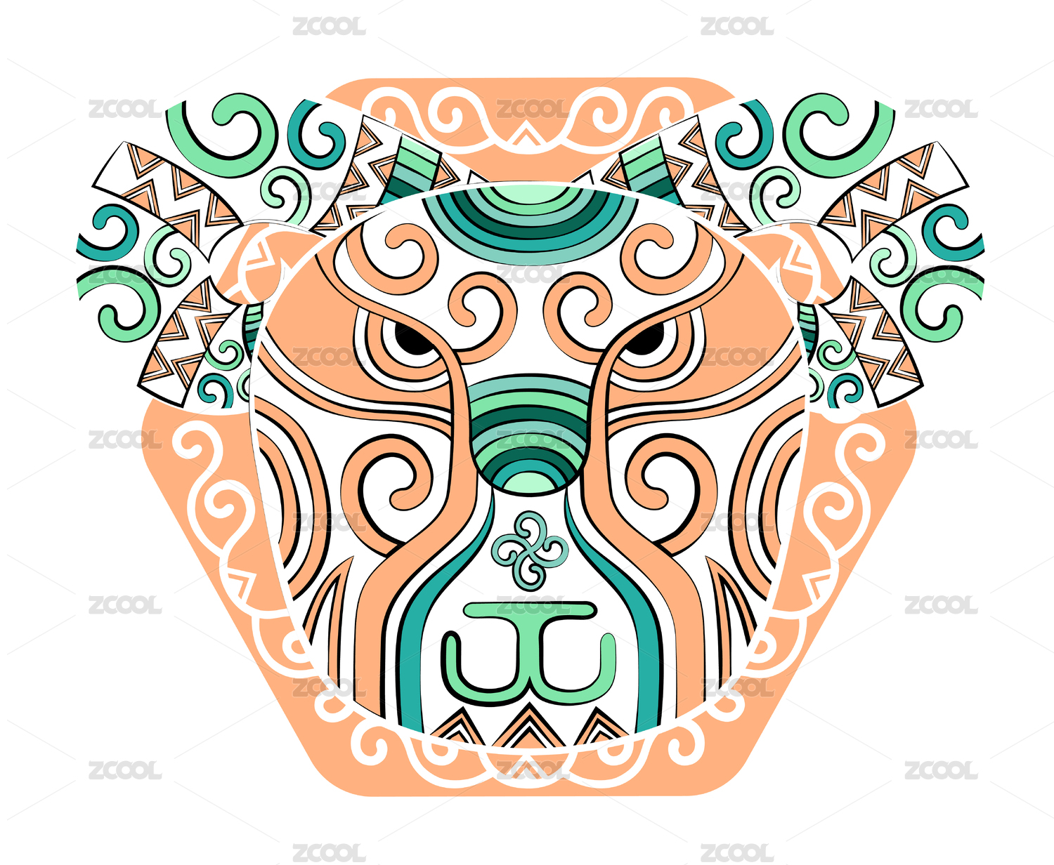 十二生肖简约国潮羊头潮流印花纹样矢量插画