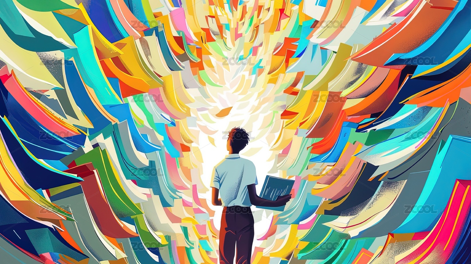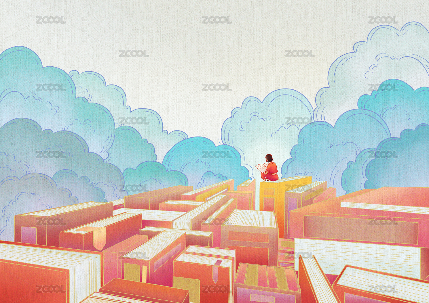 读书,学习,人,年轻人,雪学生,书,彩色,插图,设计,艺术
