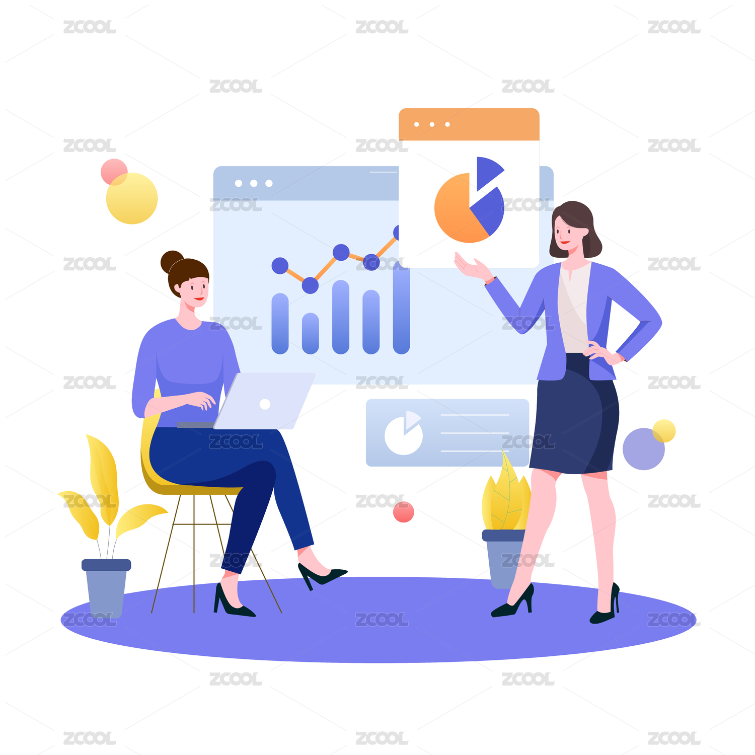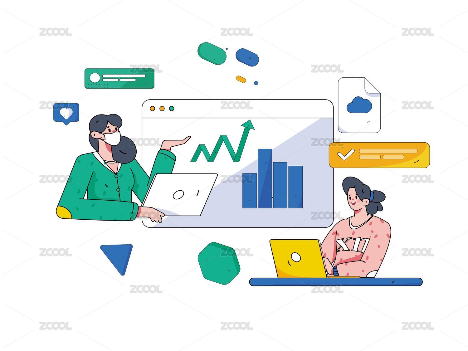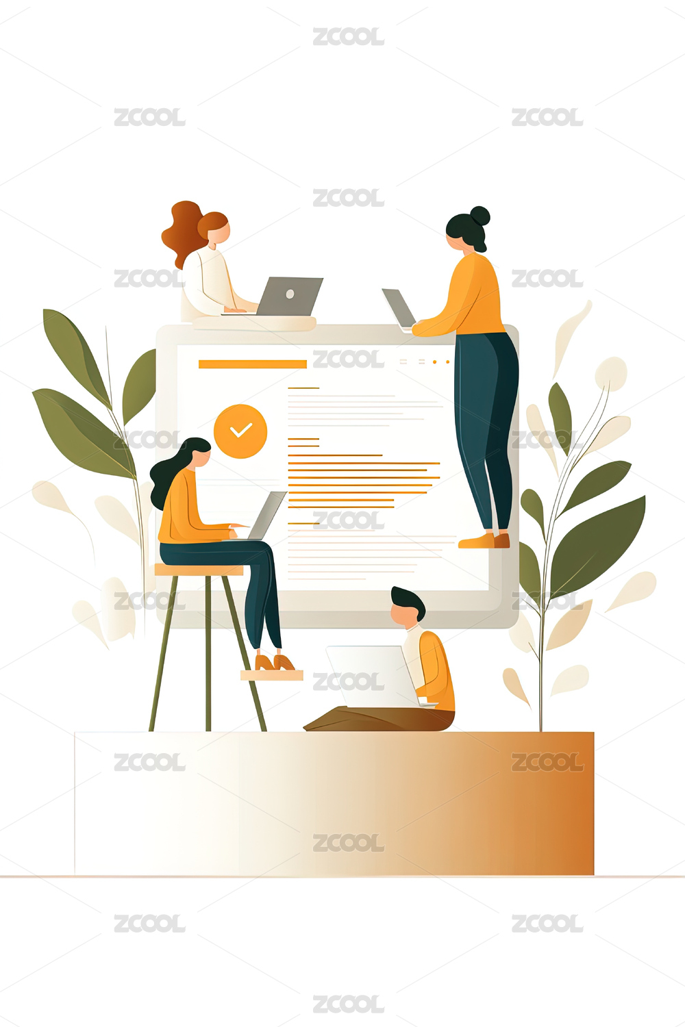 白领线上协作一起完成工作提高效率清新,矢量扁平概念插画