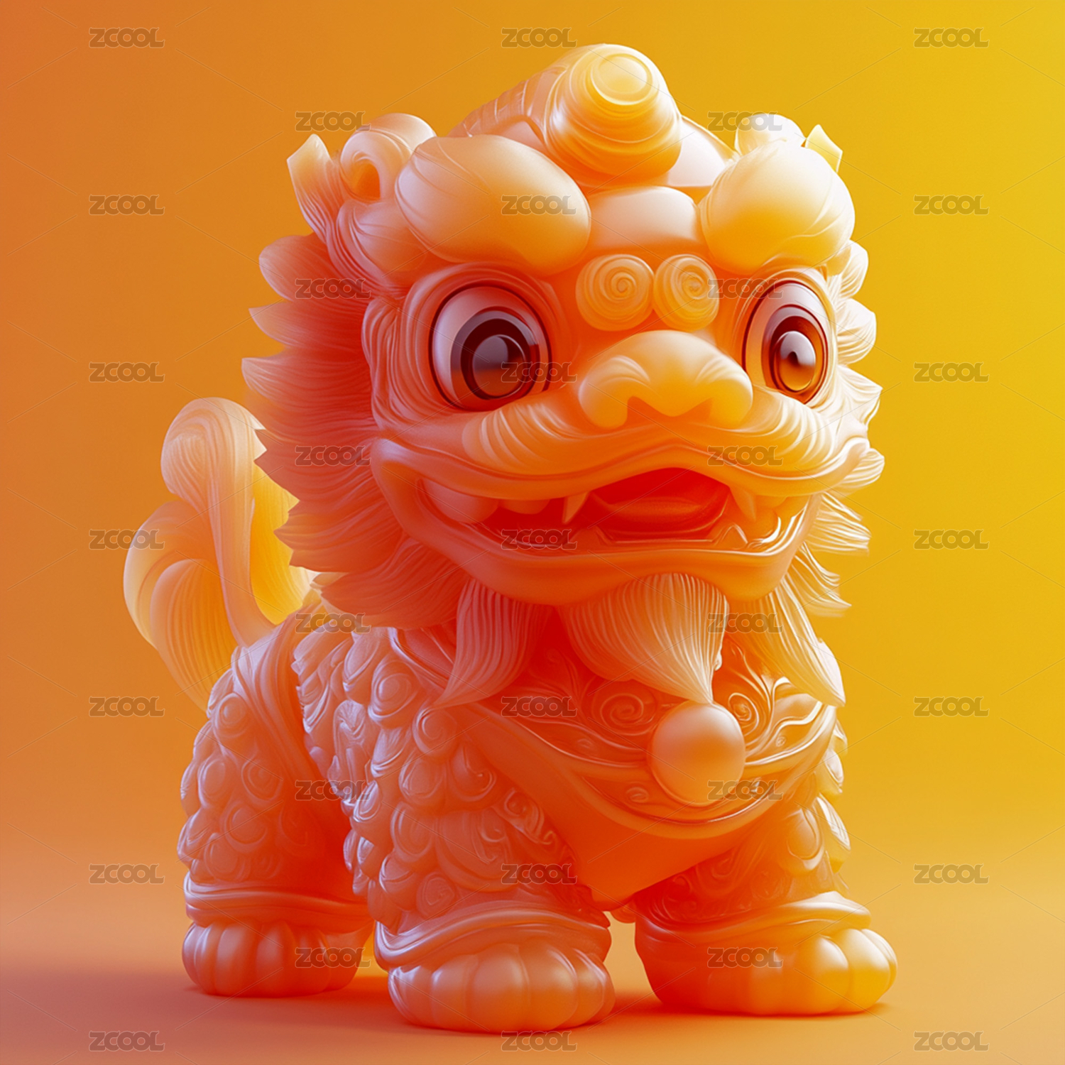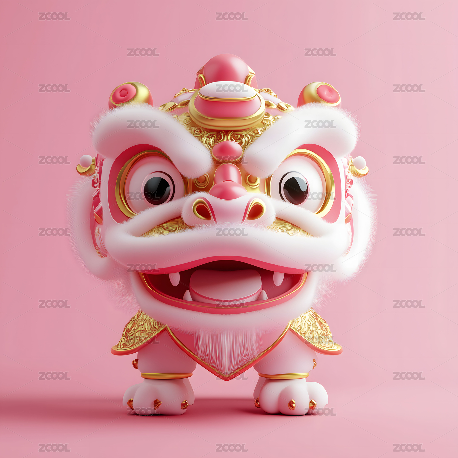 3d卡通中国传统春节新年舞狮国潮醒狮插画