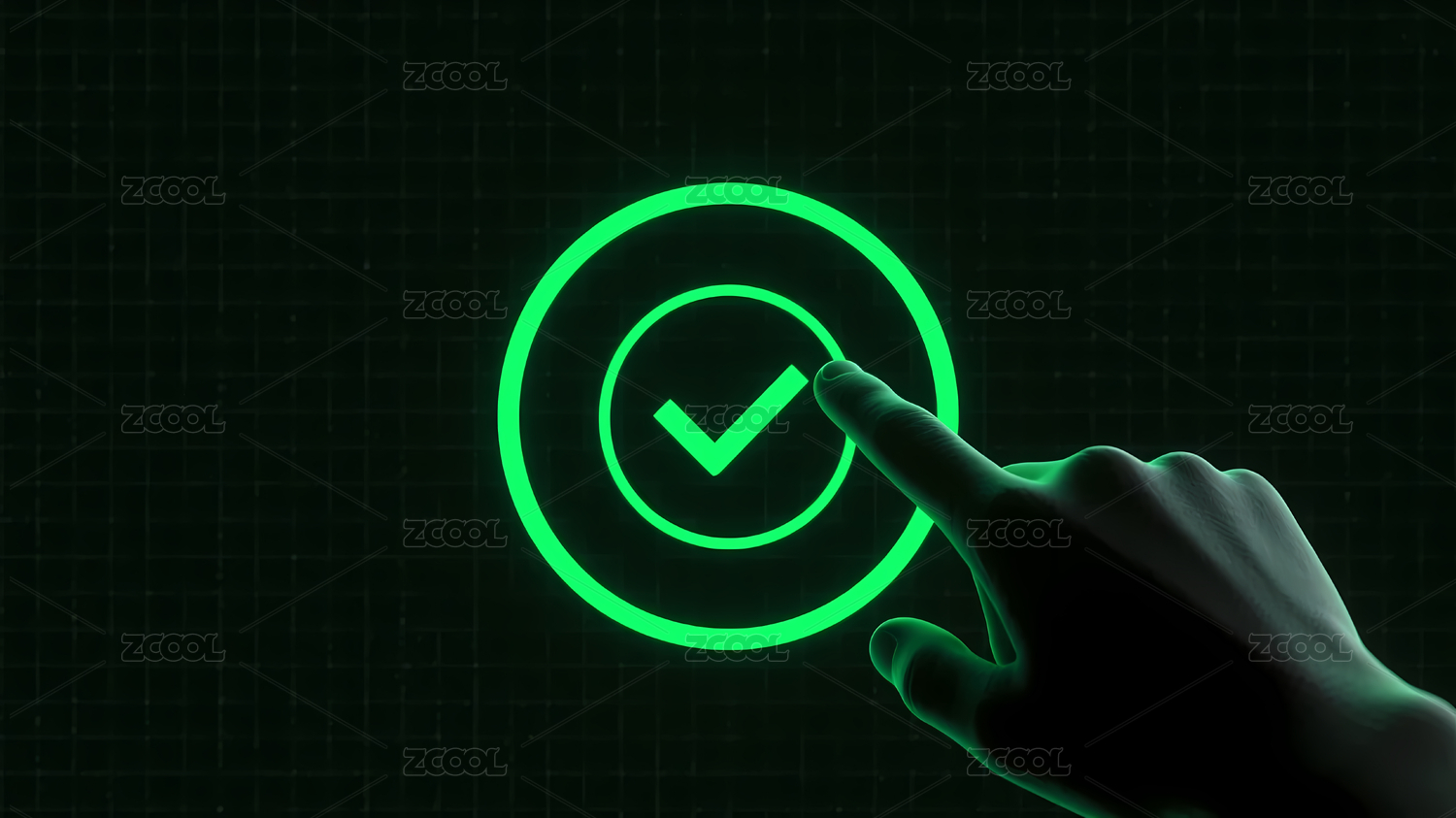 黑色背景下手指着绿色对勾符号