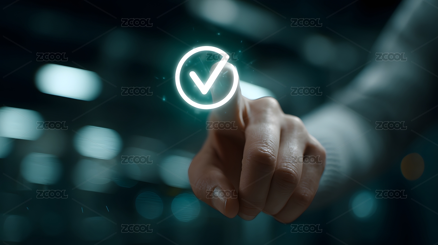 手指触碰发光对勾图标