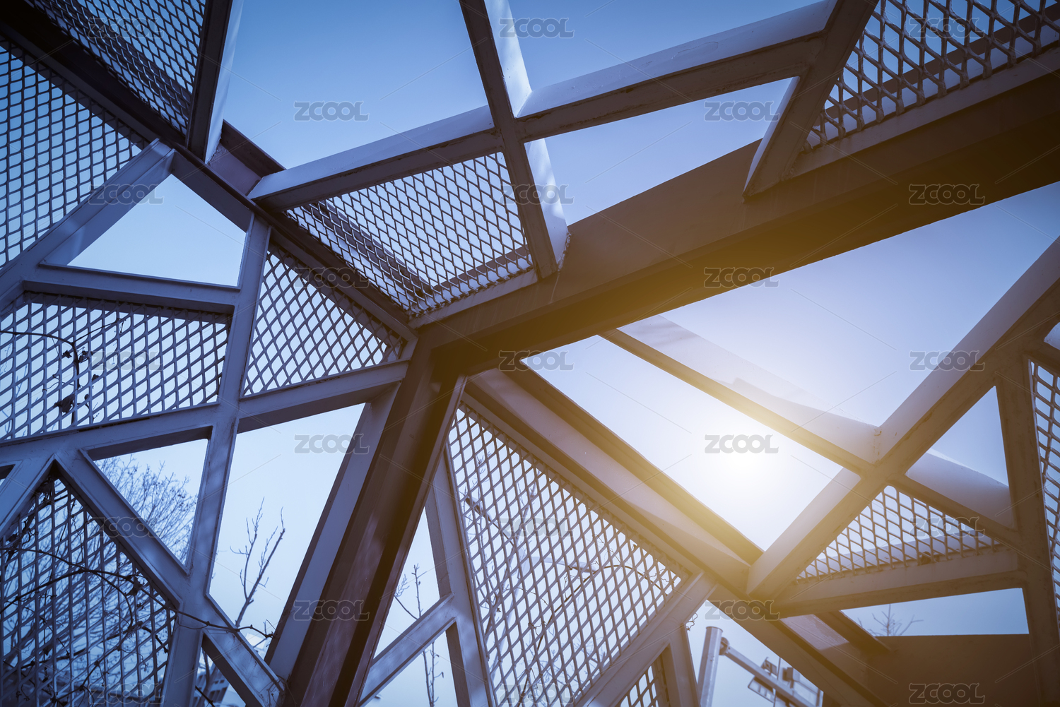 仰视钢结构建筑和现代建筑玻璃幕墙
