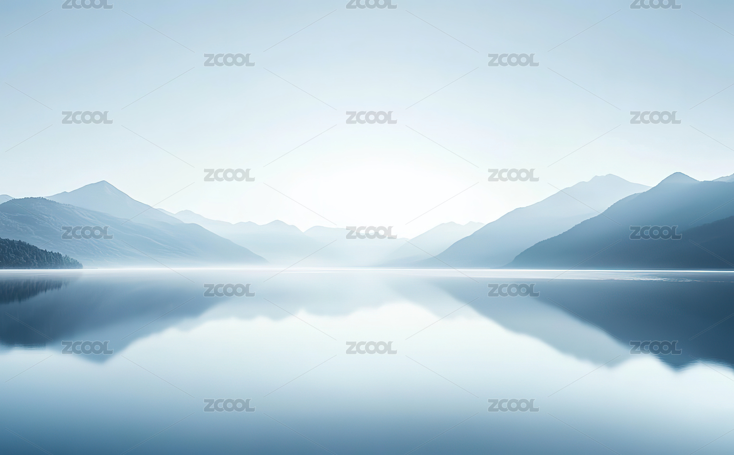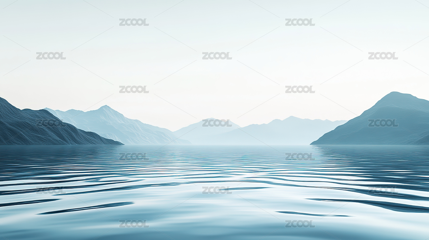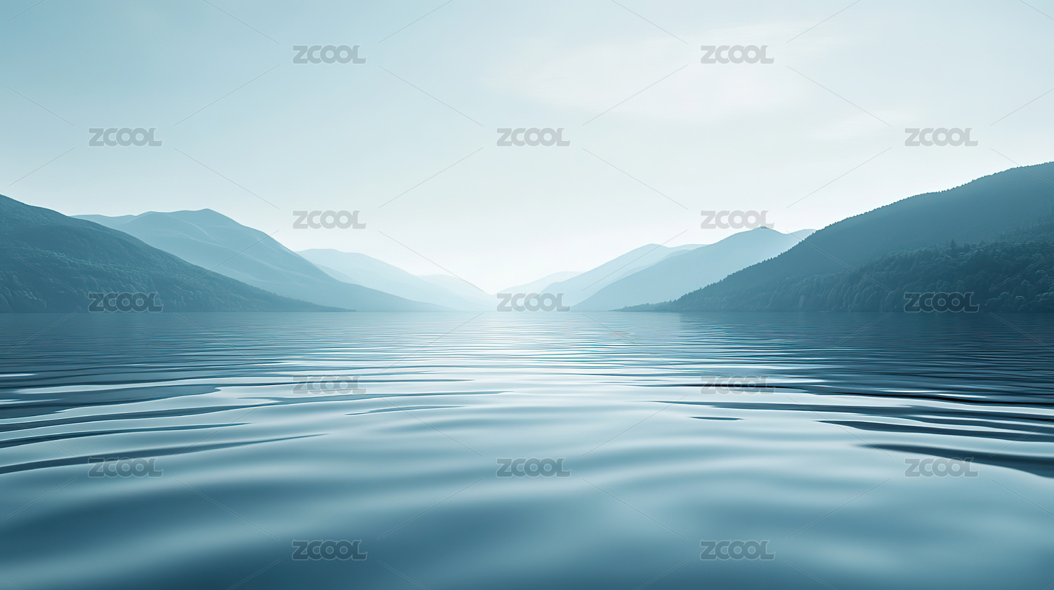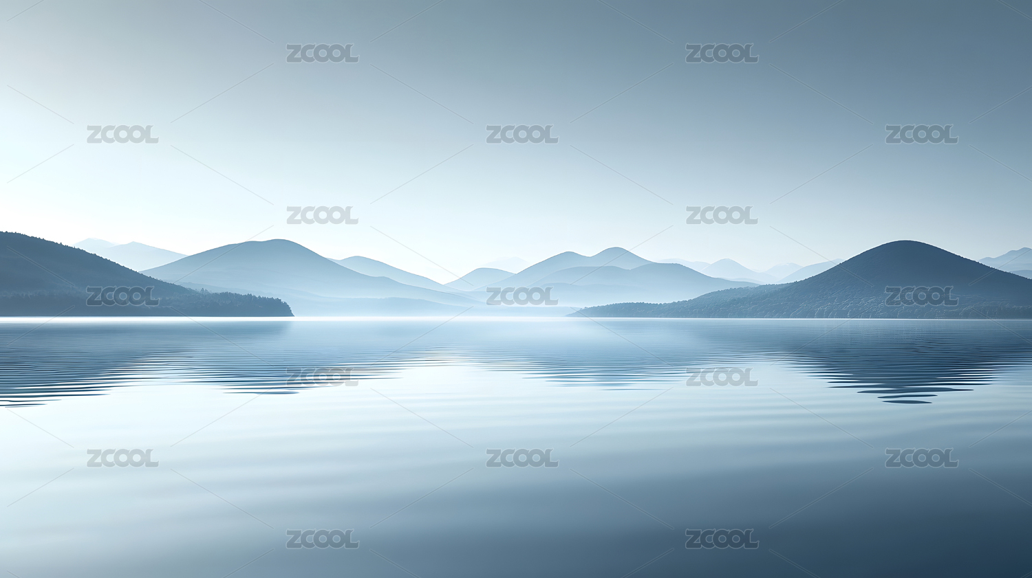宁静湖面与远山的和谐景象
