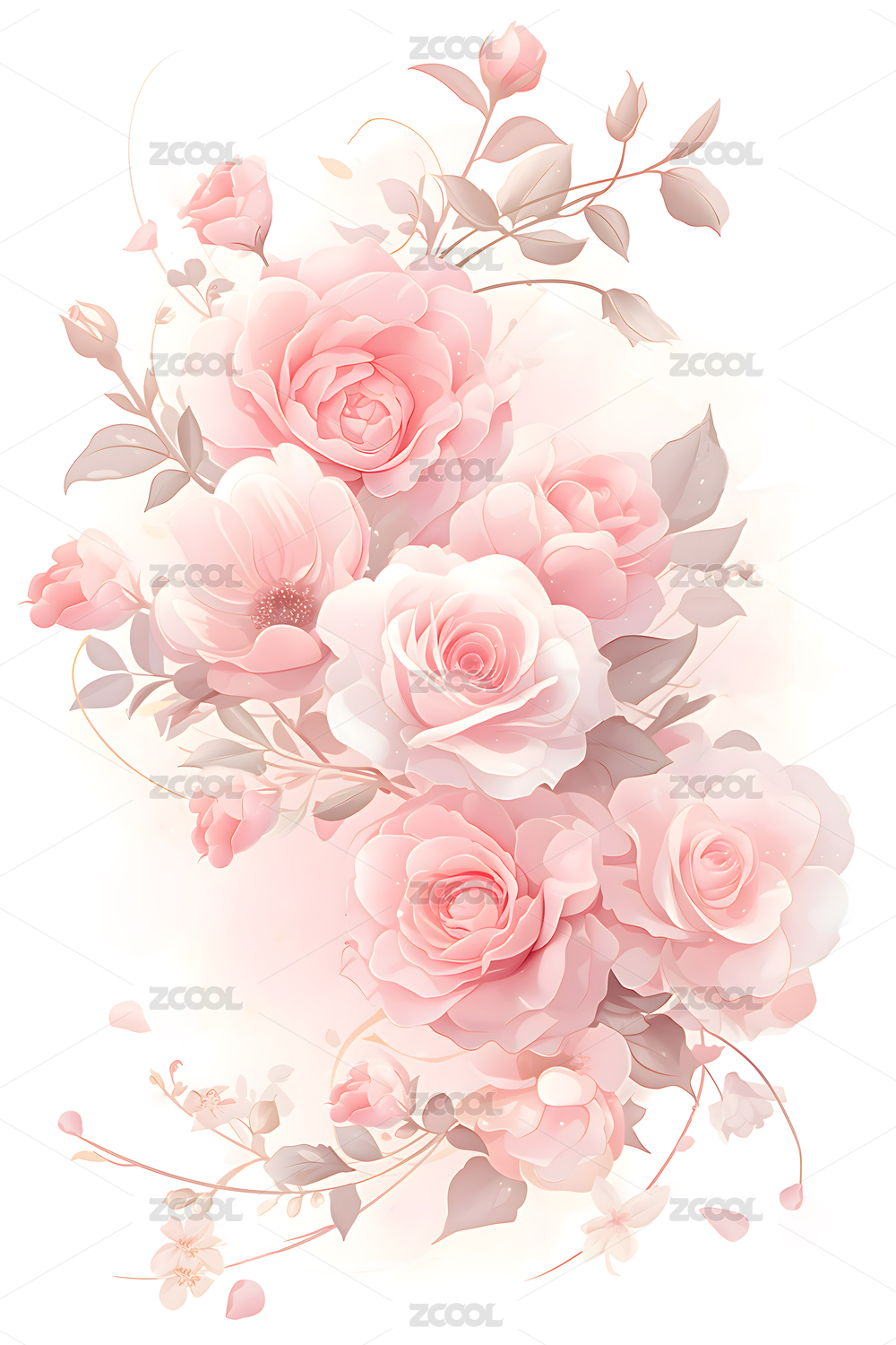 粉色玫瑰花束插画